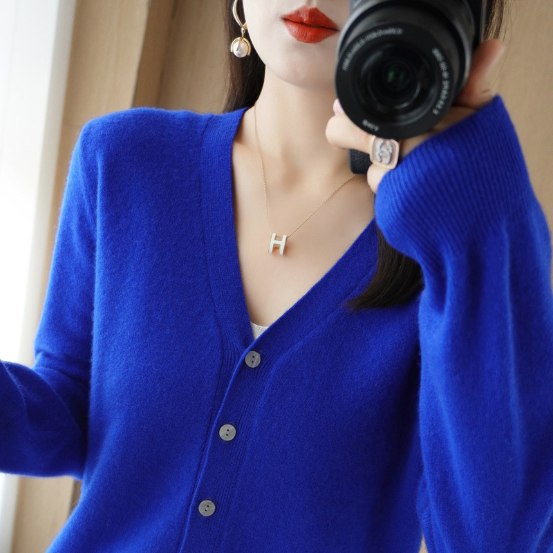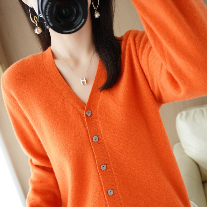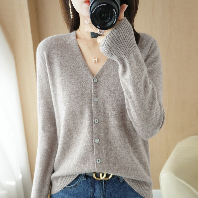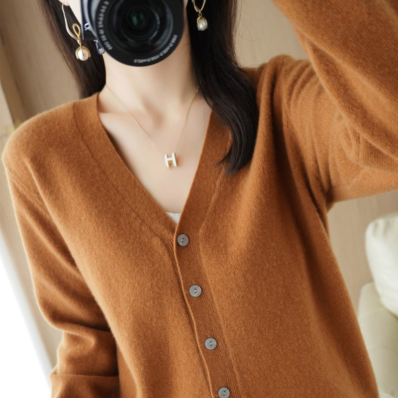 Главная страница > Вязаный топ в корейском стиле на раннюю осень, свитер с V-образным вырезом, свободный базовый слой, женский однотонный укороченный кардиган, оптом
