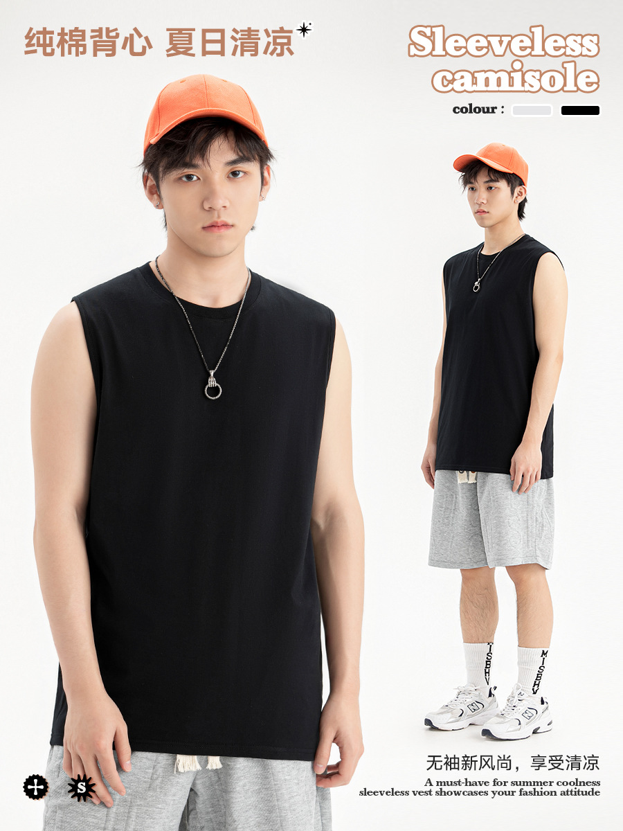 Лето 230 г хлопчатобумажный мужской жилет свободный белый с плечом