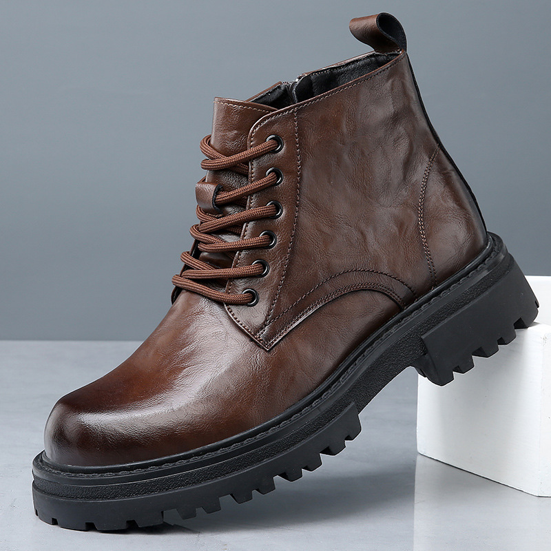 Главная страница > Мужские ботинки Мартин 2025 года, новая модель с добавлением хлопка, тонкие британские ботинки средней высоты на толстой подошве, увеличивающие рост, черные мотоциклетные короткие ботинки.