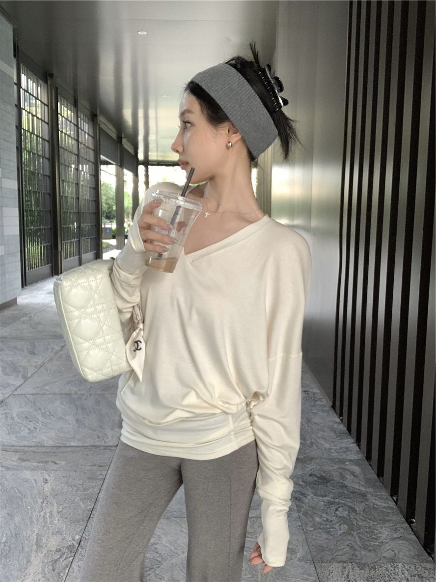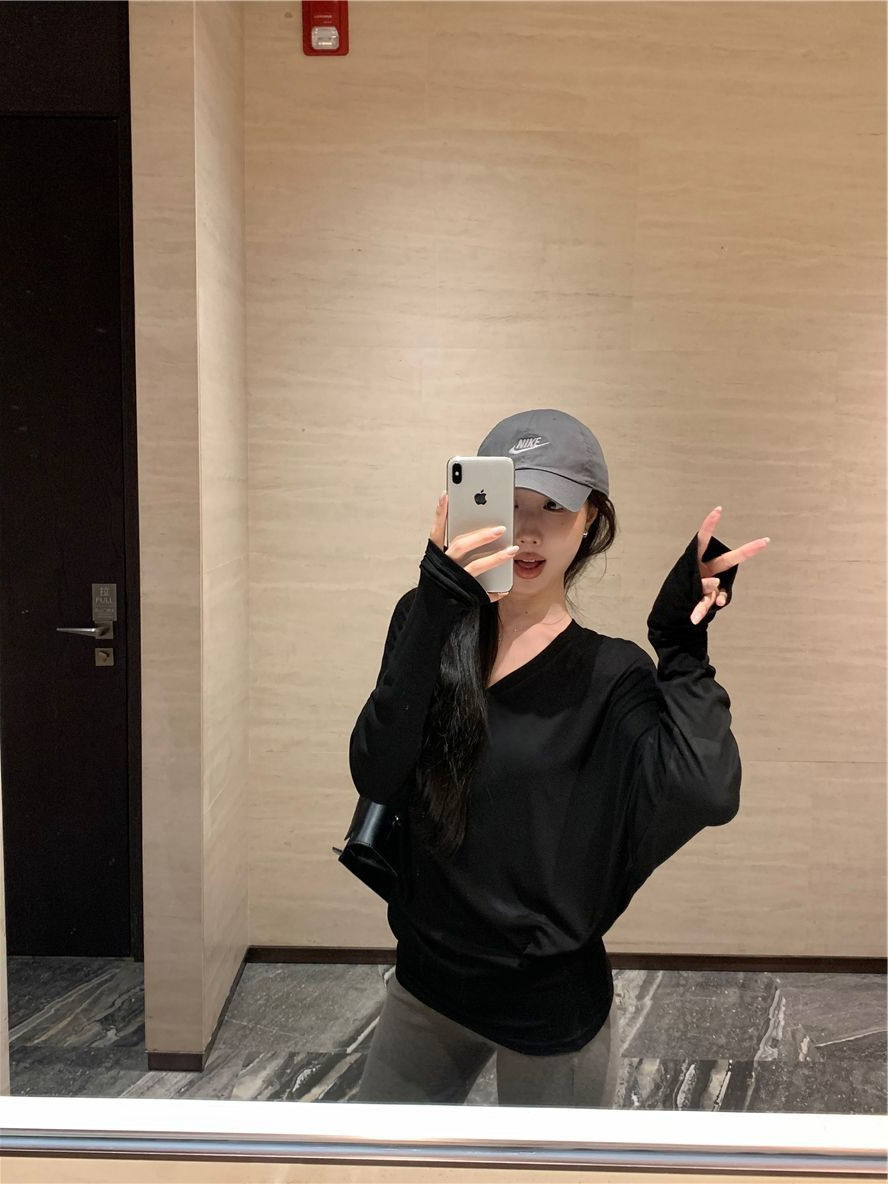 Главная страница > Do Qier Многоцветный v-образный вырез с длинными рукавами свободная футболка женская ранняя весна и лето солнцезащитный крем новая повседневная корейская версия средней и длинной модели