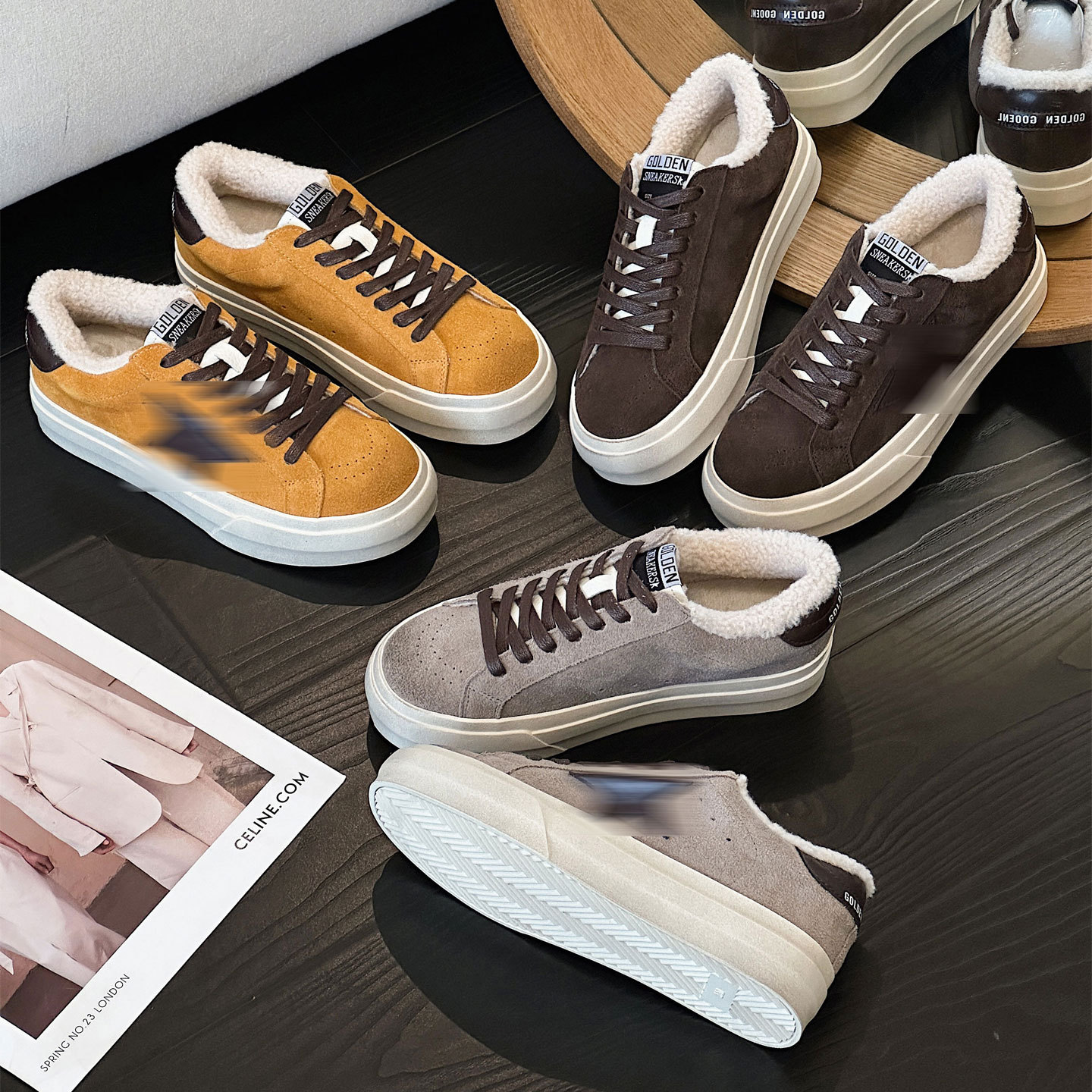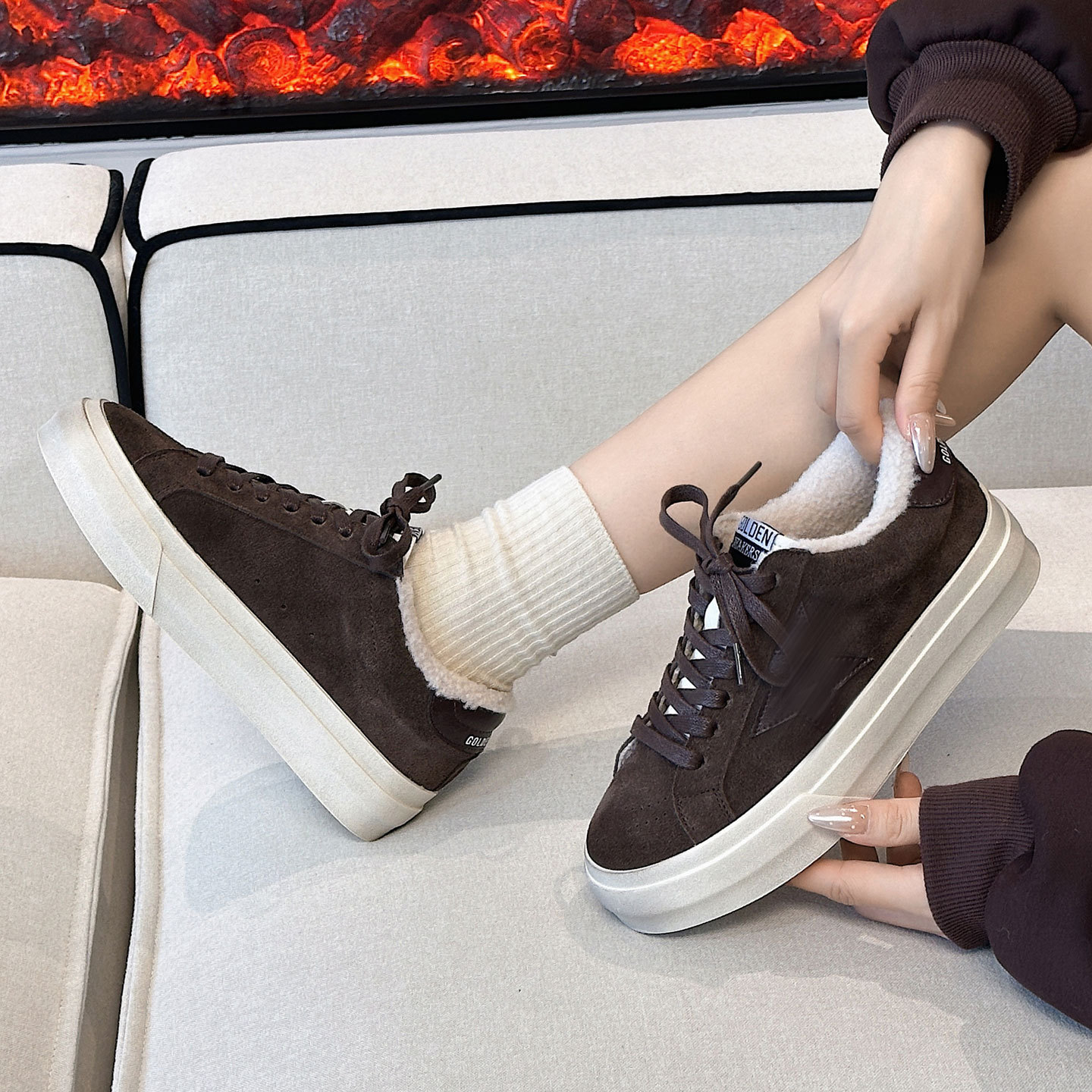 Главная страница > Женские грязные туфли из натуральной кожи со звездами, зима 2025 года, теплые модные повседневные универсальные кроссовки в корейском стиле на флисовой подкладке в стиле ретро