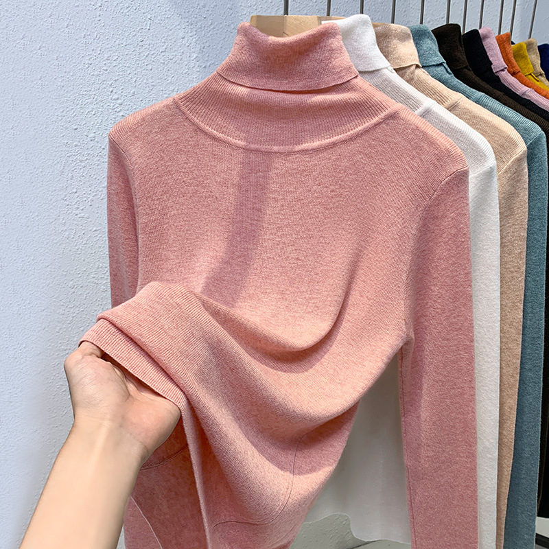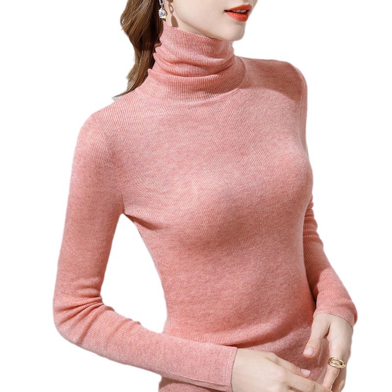 Вязаная базовая кофта для женщин, новинка 2024 года, элегантный свитер-пуловер с высоким воротом из шерсти, эластичный внутренний слой, топ с эффектом утягивания талии.