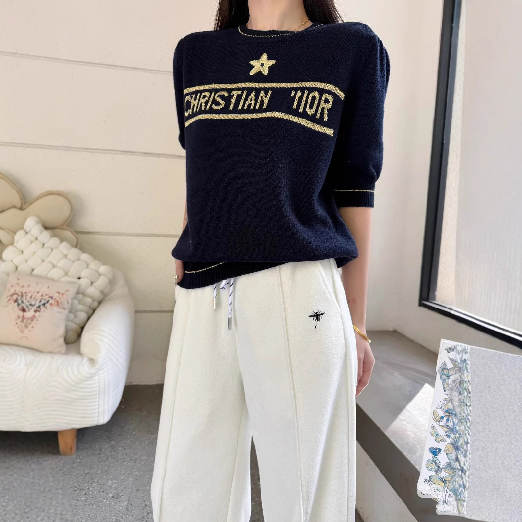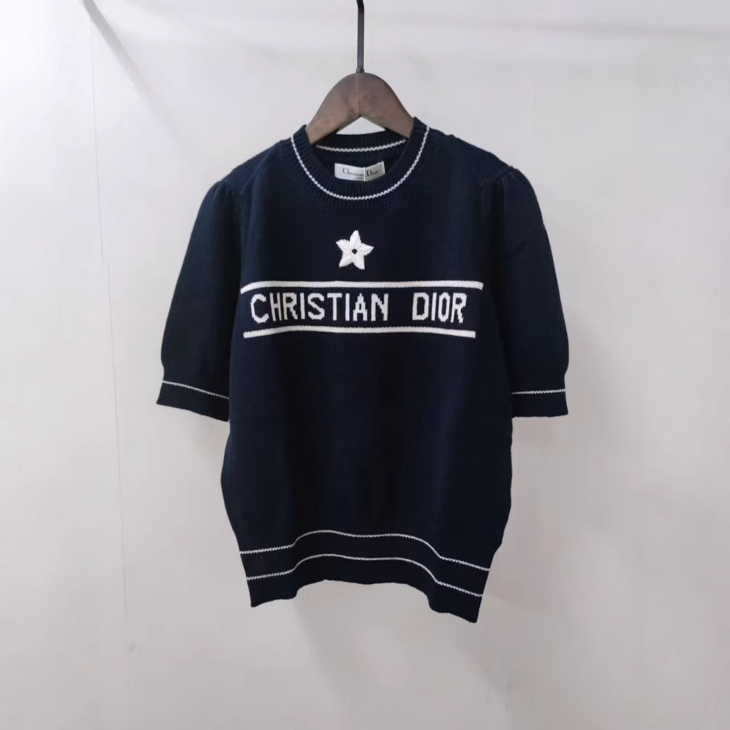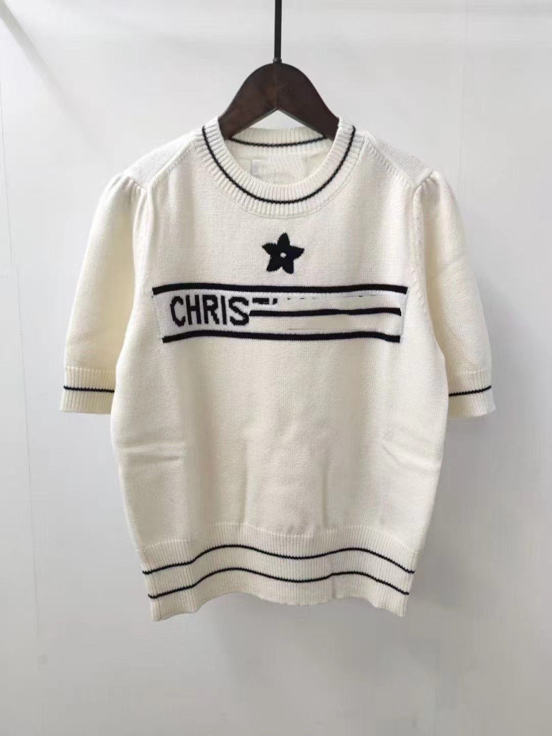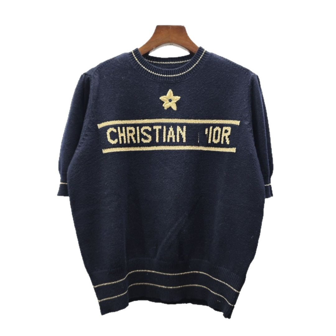 Высокая версия D Home ранняя весна новая пятиконечная звезда вышитый шерстяной вязаный женский короткий рукав легкий ветер дикий короткий трикотажный свитер