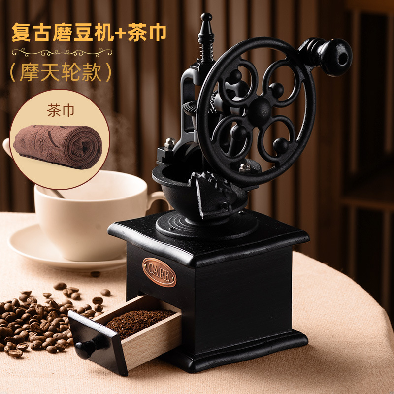 ☆★Ретро кофемолка [модель колеса обозрения] + кофейная воронка + чайное полотенце☆★