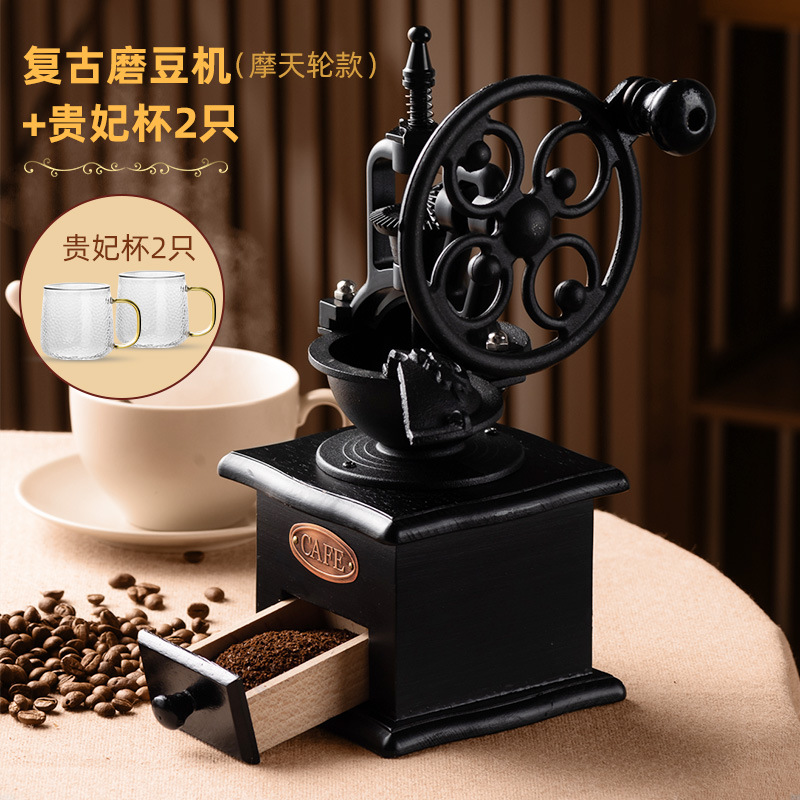 ☆★Ретро кофемолка [модель колеса обозрения] + чашка латте арт 600 мл + вспениватель молока☆★