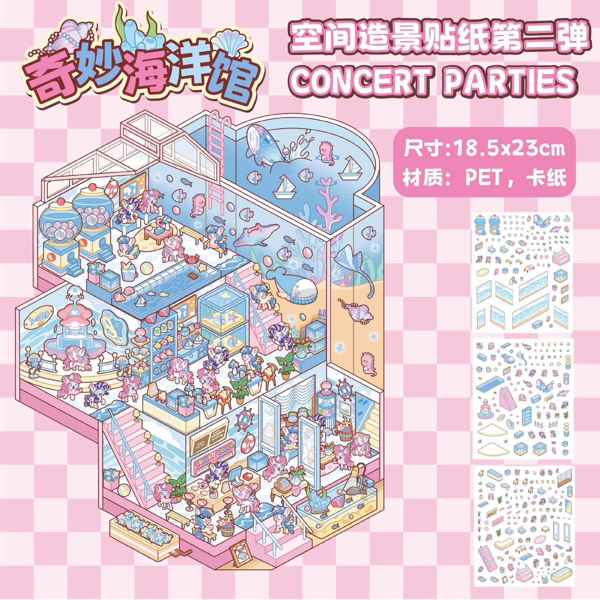 Большие миниатюрные наклейки сцены | наклейки с пространственными сценами | концертная вечеринка пони