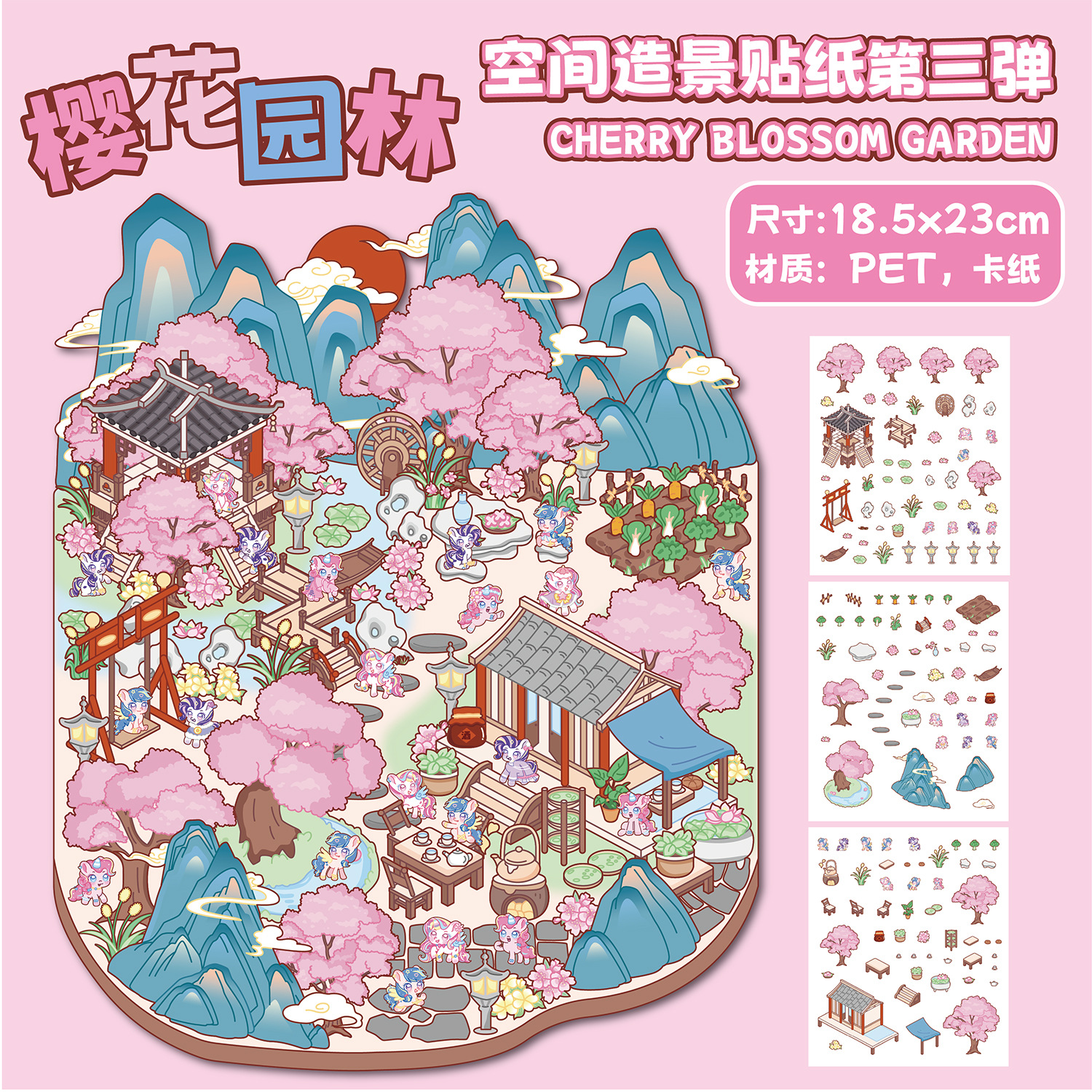 Миниатюрные наклейки с сценами丨Animal Style 5.0丨Маленький пони, сад с вишневым цветом
