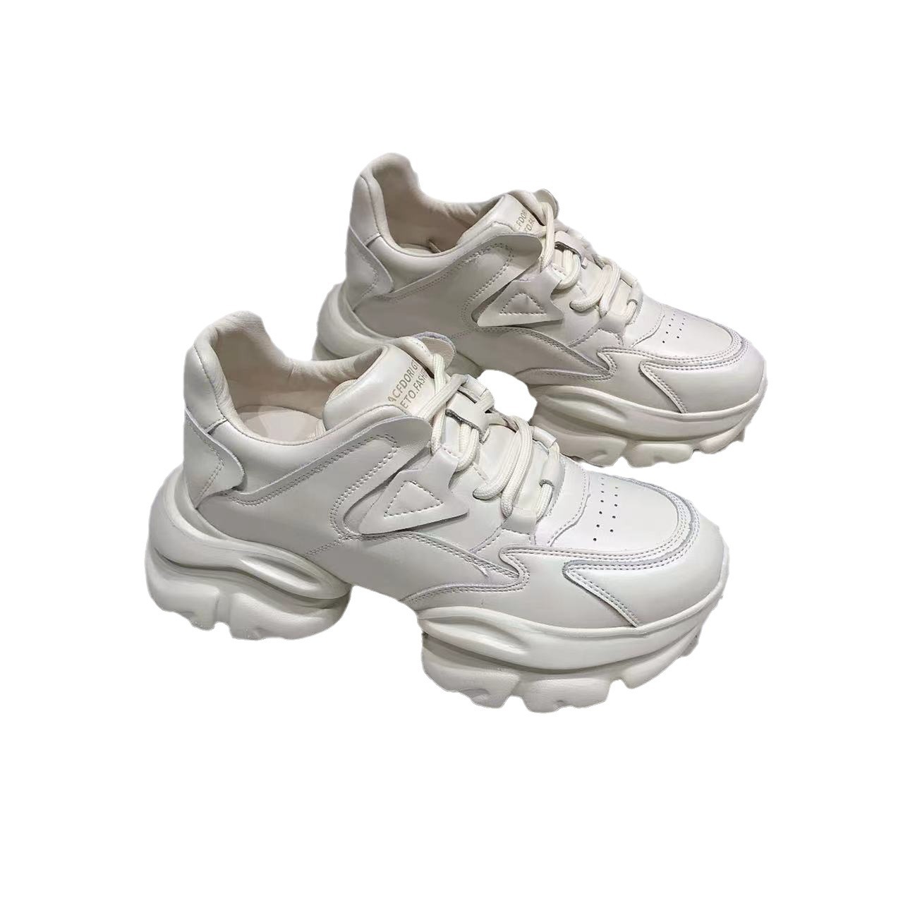 Обувь папы женские кожаные дикие туфли на толстой подошве 2025 новые кроссовки супер огонь женские корейские кроссовки