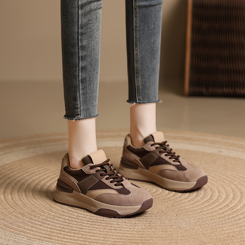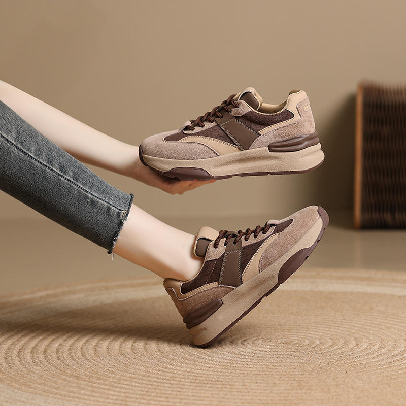Главная страница > Женские кроссовки на толстой подошве из натуральной кожи с цветовыми блоками, мягкие немецкие тренировочные кроссовки, новинка осени-зимы 2025, легкие спортивные повседневные туфли.