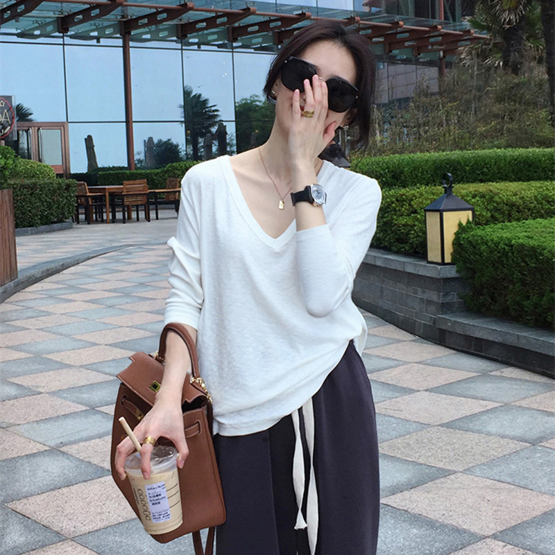 Главная страница > Рубашка с v-образным вырезом для летнего платья новая бамбуковая хлопчатобумажная футболка женская короткая рубашка с короткими рукавами