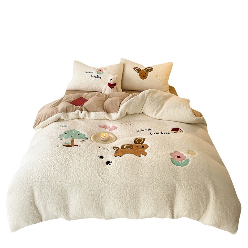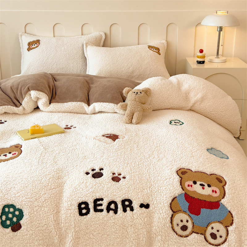 Главная страница > Мультяшный кашемир набор из четырех частей зимний толстый молочный пух стеганое одеяло Nantong коралловый пух постельное белье