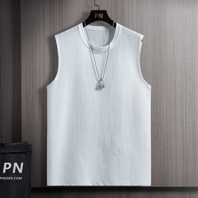 Главная страница > Льняный шелк мужской жилет сплошной цвет дикий размер свободный без рукавов футболка тренда дышащая и прохладная одежда