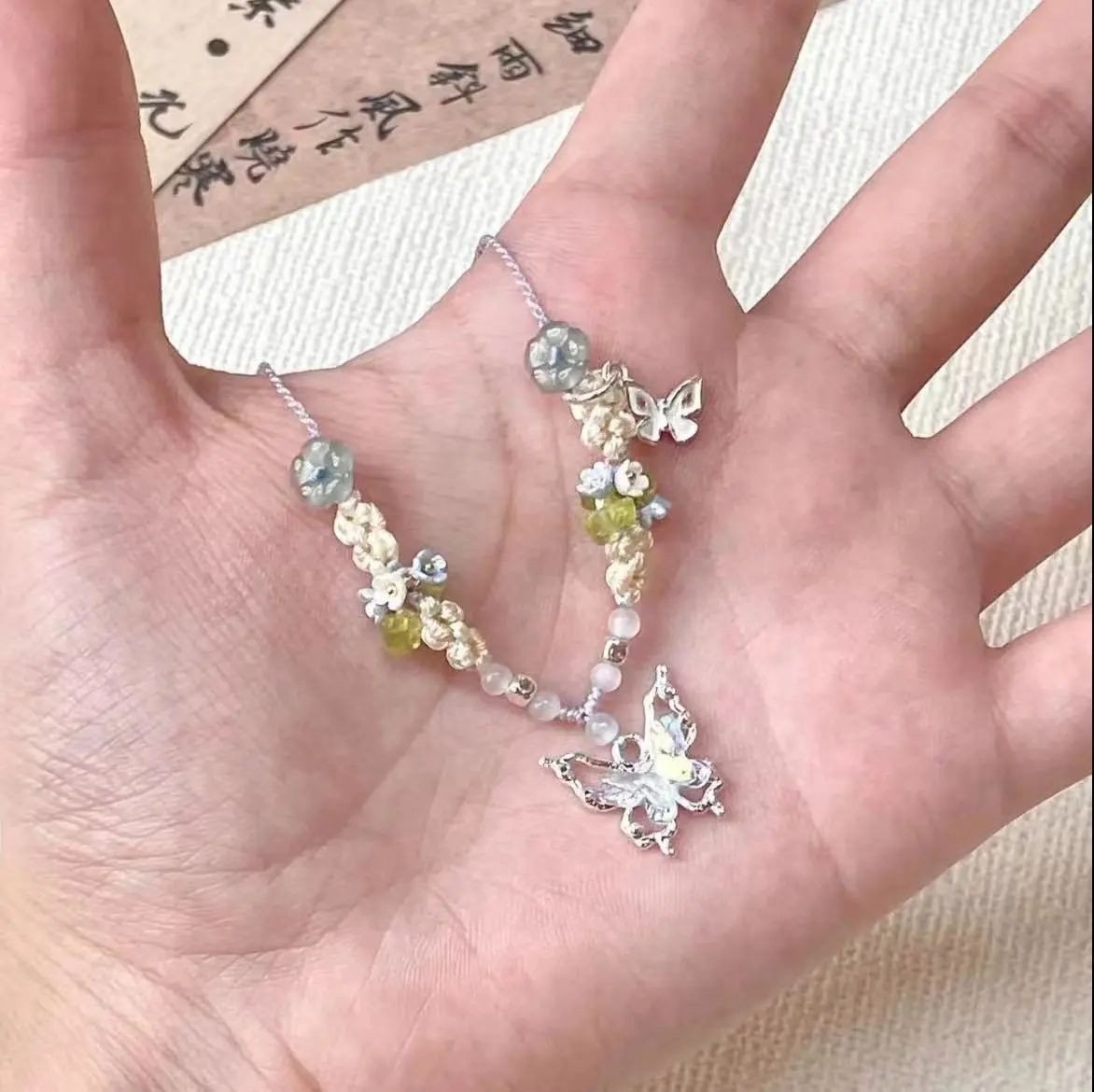 "Персиковый порошок Сюй Чун" Новый китайский стиль бабочки плетеное ожерелье 2024 новый темперамент высокого уровня показывает белую цепочку ключицы