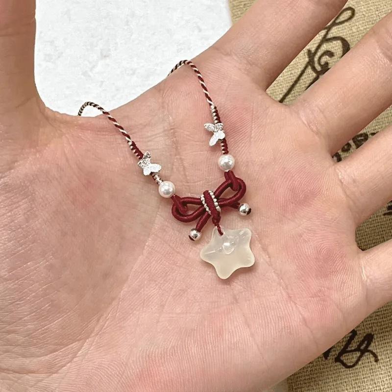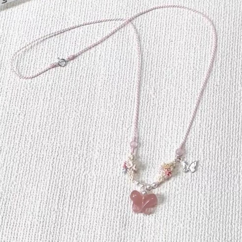 Главная страница > "Персиковый порошок Сюй Чун" Новый китайский стиль бабочки плетеное ожерелье 2024 новый темперамент высокого уровня показывает белую цепочку ключицы