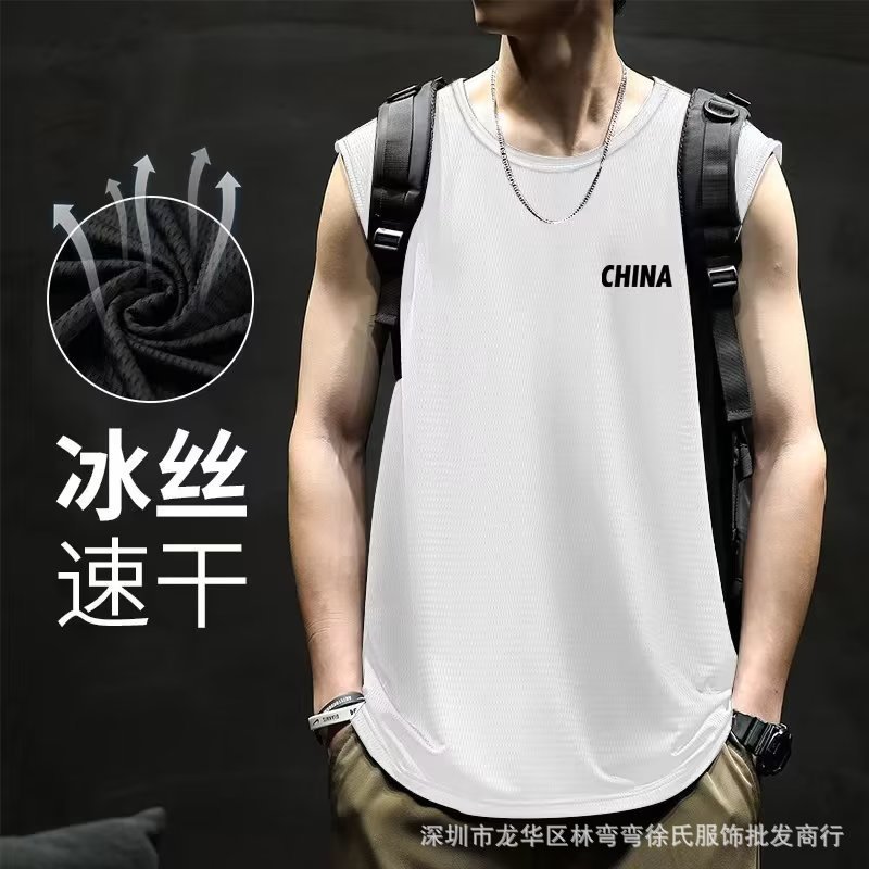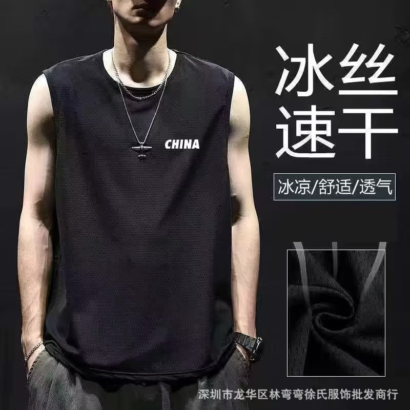 Главная страница > Летний жилет без рукавов из ледяного шелка, мужской жилет, быстросохнущий, свободный на ощупь лед, большие размеры, мужская спортивная камуфляжная футболка для фитнеса, модная