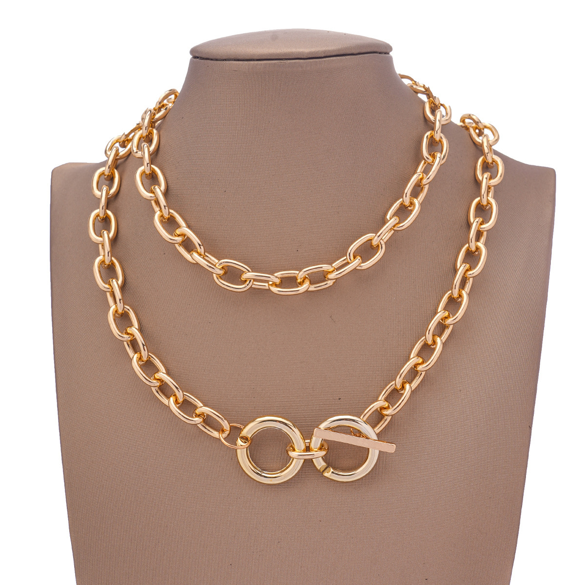 Главная страница > Европейский и американский трансграничный ювелирный тренд индивидуальность алюминиевая цепочка многослойные украшения женские модные геометрические металлические пряжки ключицы украшения
