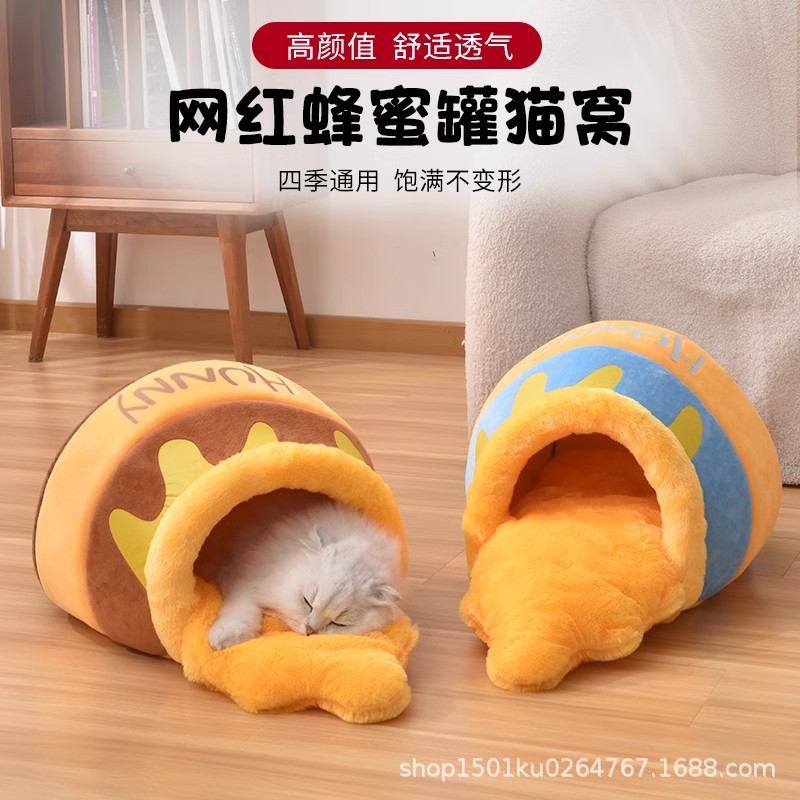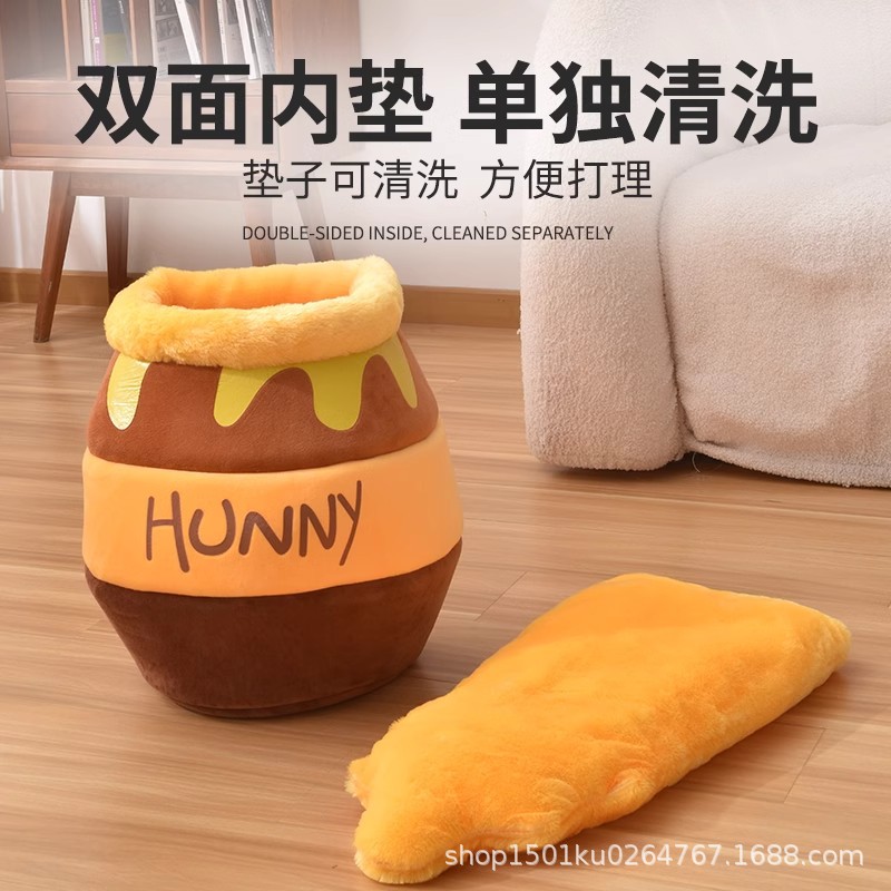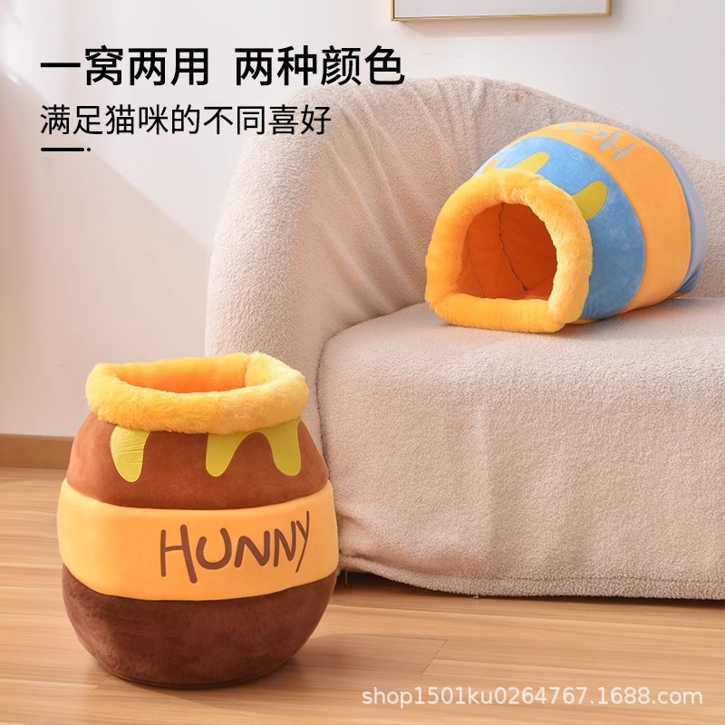 Лежанка-медовница для кошек, лежанка для собак мелких и средних пород, полузакрытая зимняя теплая лежанка для животных, спальный мешок Винни-Пух, утолщенный.