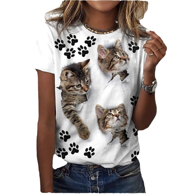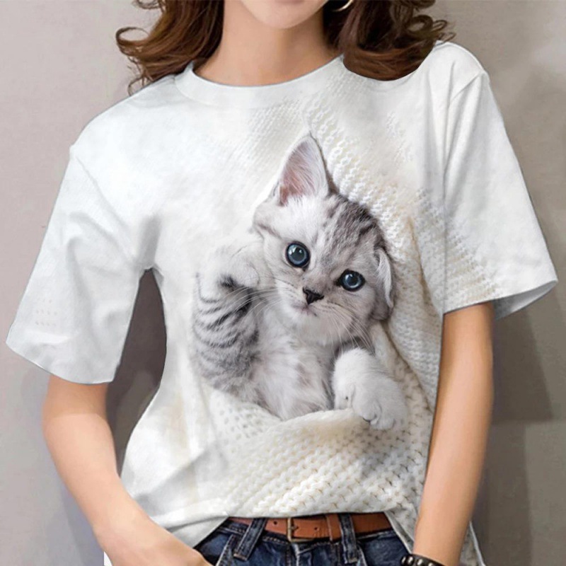 Главная страница > 2024 Amazon Independent Station Женская футболка с короткими рукавами Симпатичная кошка 3D с принтом