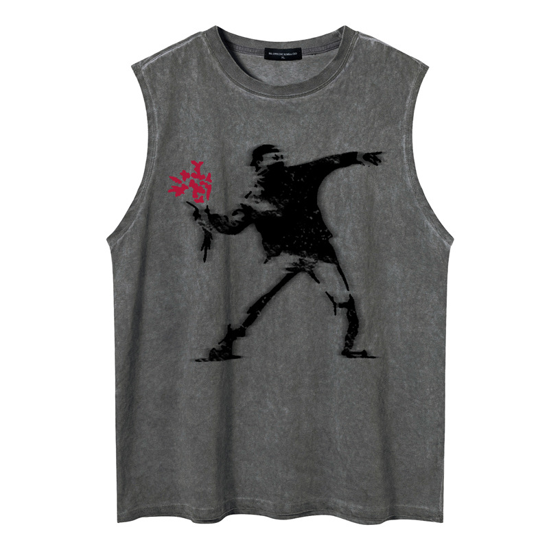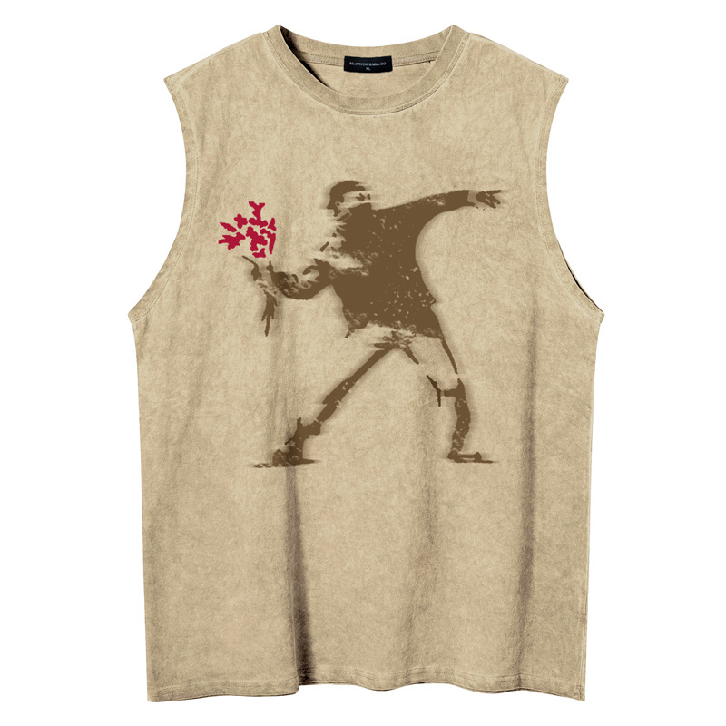 Главная страница > Летний новый жилет из чистого хлопка в стиле ретро, мужской свободный прямой жилет с круглым вырезом и жареным цветом, футболка без рукавов, без пола