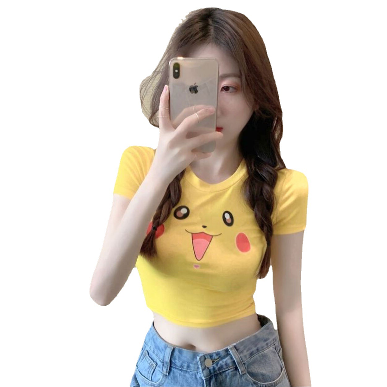 Главная страница > Женская облегающая футболка с короткими рукавами от Интернет-знаменитостей, Летний милый новый облегающий французский топ с мультяшным рисунком, открытый в виде пупка, 2022