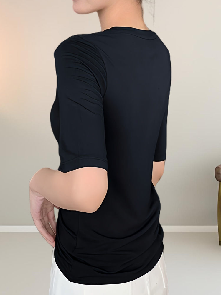 Главная страница > Черная женская футболка из модала со средним рукавом, короткий рукав, весна/лето, тонкий базовый слой с низким вырезом и рукавами три четверти.