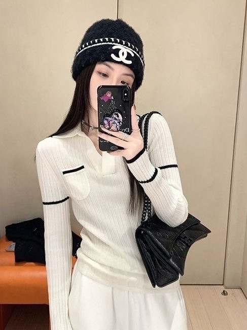 Главная страница > Pure Desire Design Sense, стройнящий вязаный свитер с длинными рукавами и воротником-поло, Женский осень и зима 2023, новый стильный Топ, универсальный свитер, модный