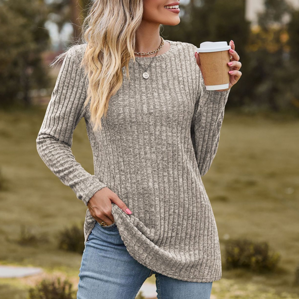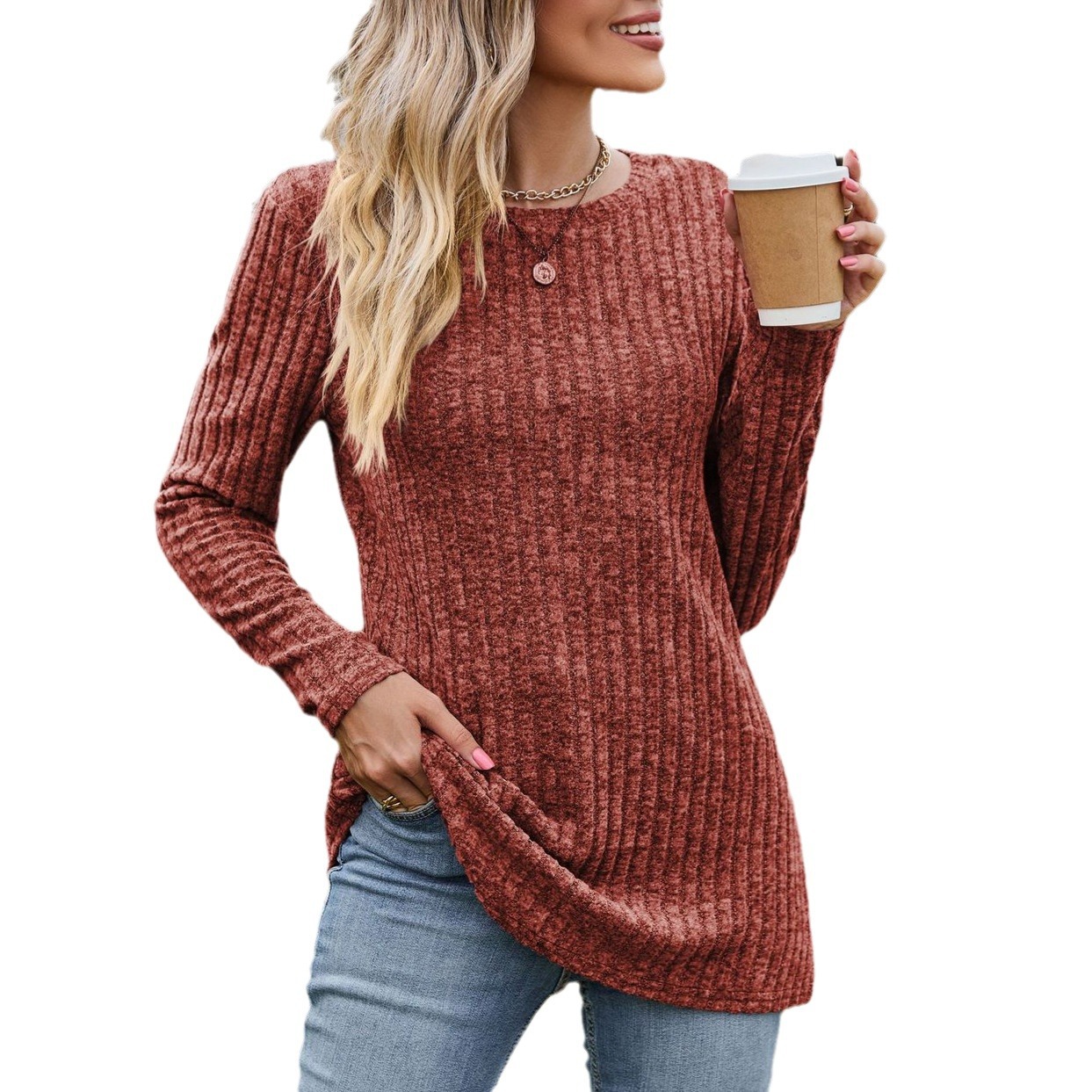 Главная страница > 2024, трансграничная осенняя новая женская одежда, Amazon, женская однотонная футболка с круглым вырезом и начесом, топ с длинными рукавами