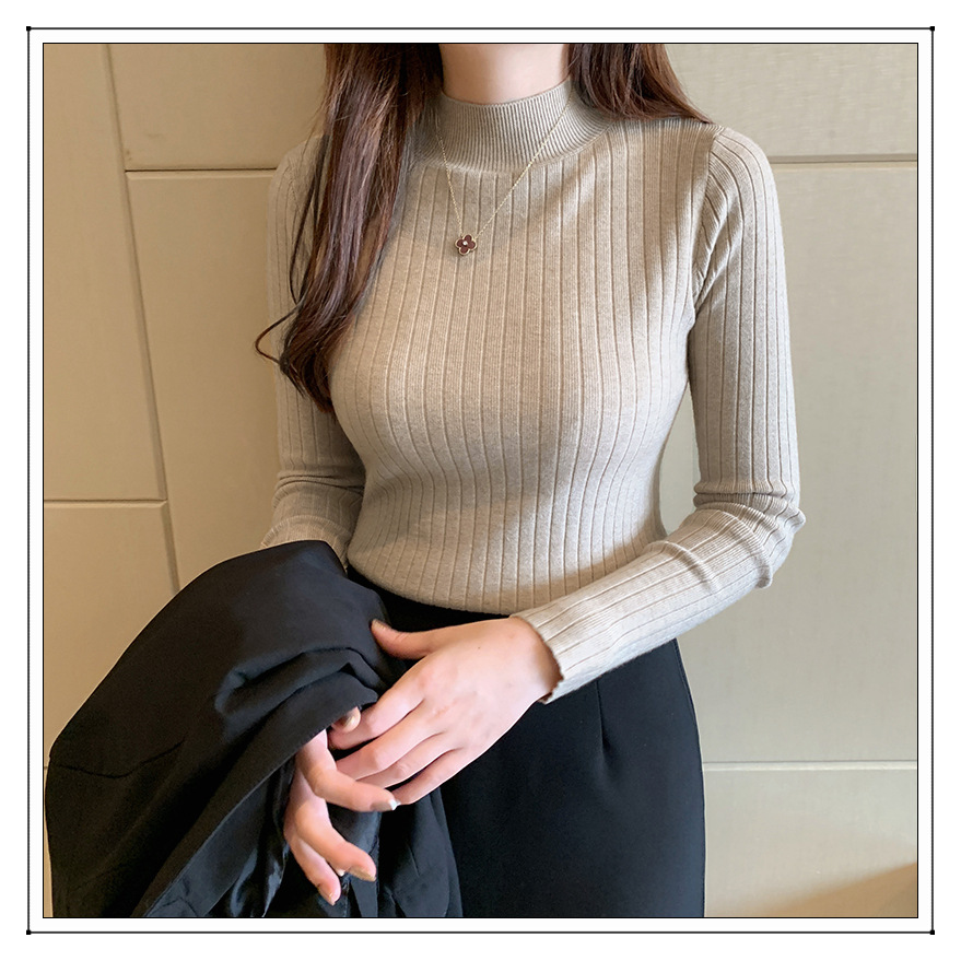 Главная страница > Новый костюм нижняя рубашка свитер женский свитер половина водолазки Женская внутренняя Одежда Западный стиль с длинным рукавом Верхняя одежда Slim Fit