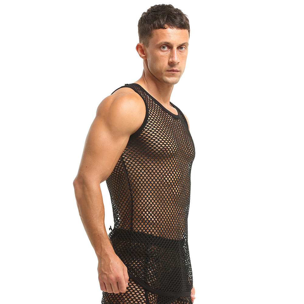 Главная страница > Полый жилет с круглым воротником, Мужской Топ, ажурный жилет, дышащая Свободная Повседневная дышащая блузка с коротким рукавом в европейском и американском стиле больших размеров