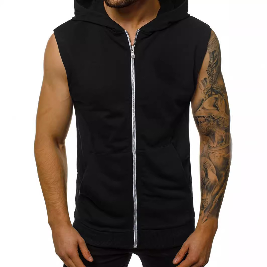 Главная страница > 2020 трансграничный европейский и американский мужской новый подходящий ко всему фитнес однотонный кардиган без рукавов с капюшоном жилет модный мужской