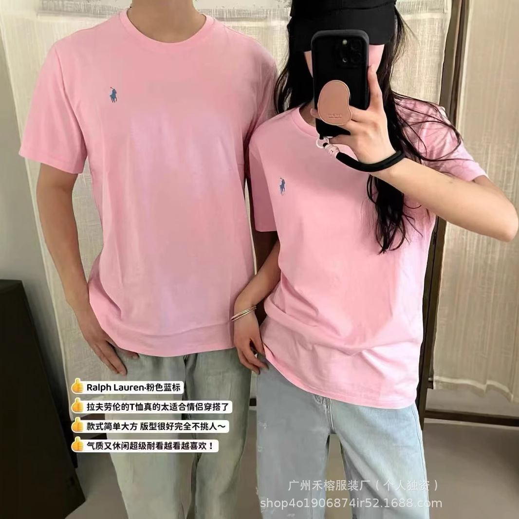 Внешняя торговля Однотонная мужская футболка с вышивкой Laffy Pony с логотипом, женская летняя футболка с короткими рукавами и круглым вырезом в американском стиле, топ для пар из чистого хлопка