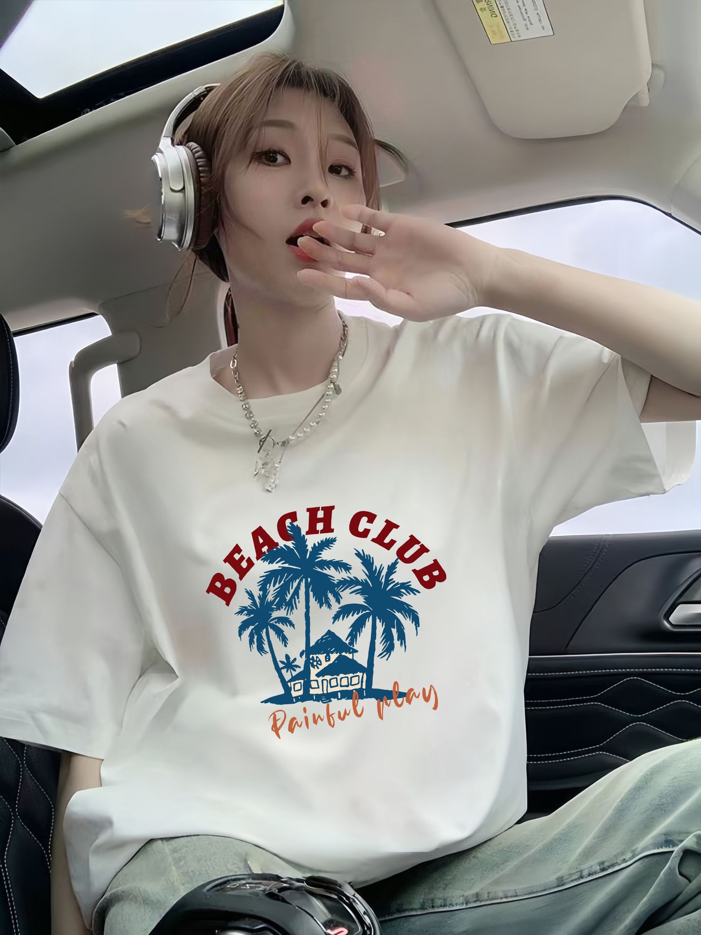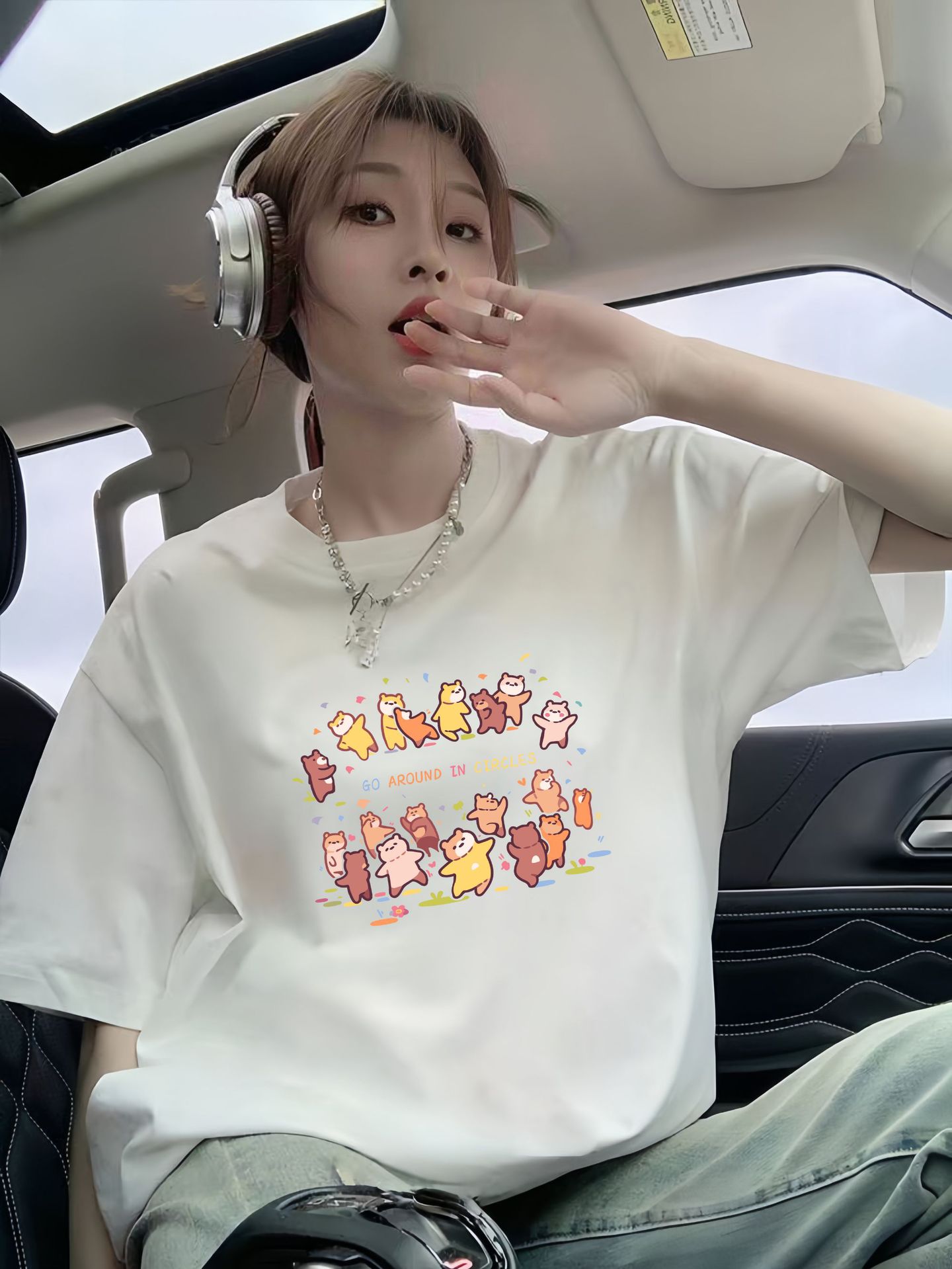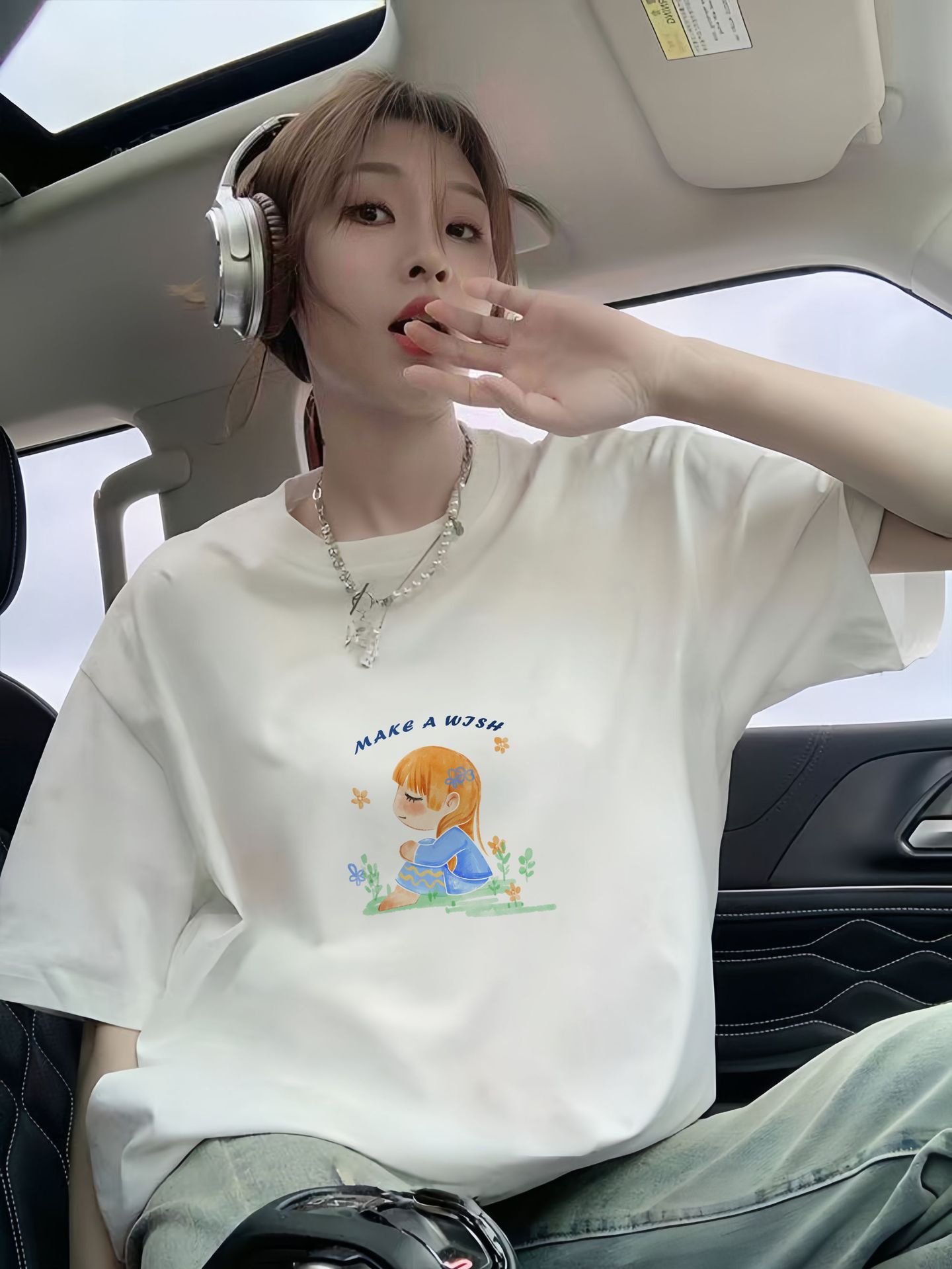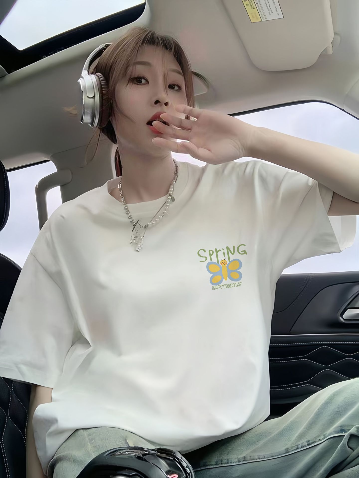 Главная страница > Американская белая футболка женская рубашка с короткими рукавами Лето 2025 новая распухшая свободная хлопковая рубашка с половинным рукавом