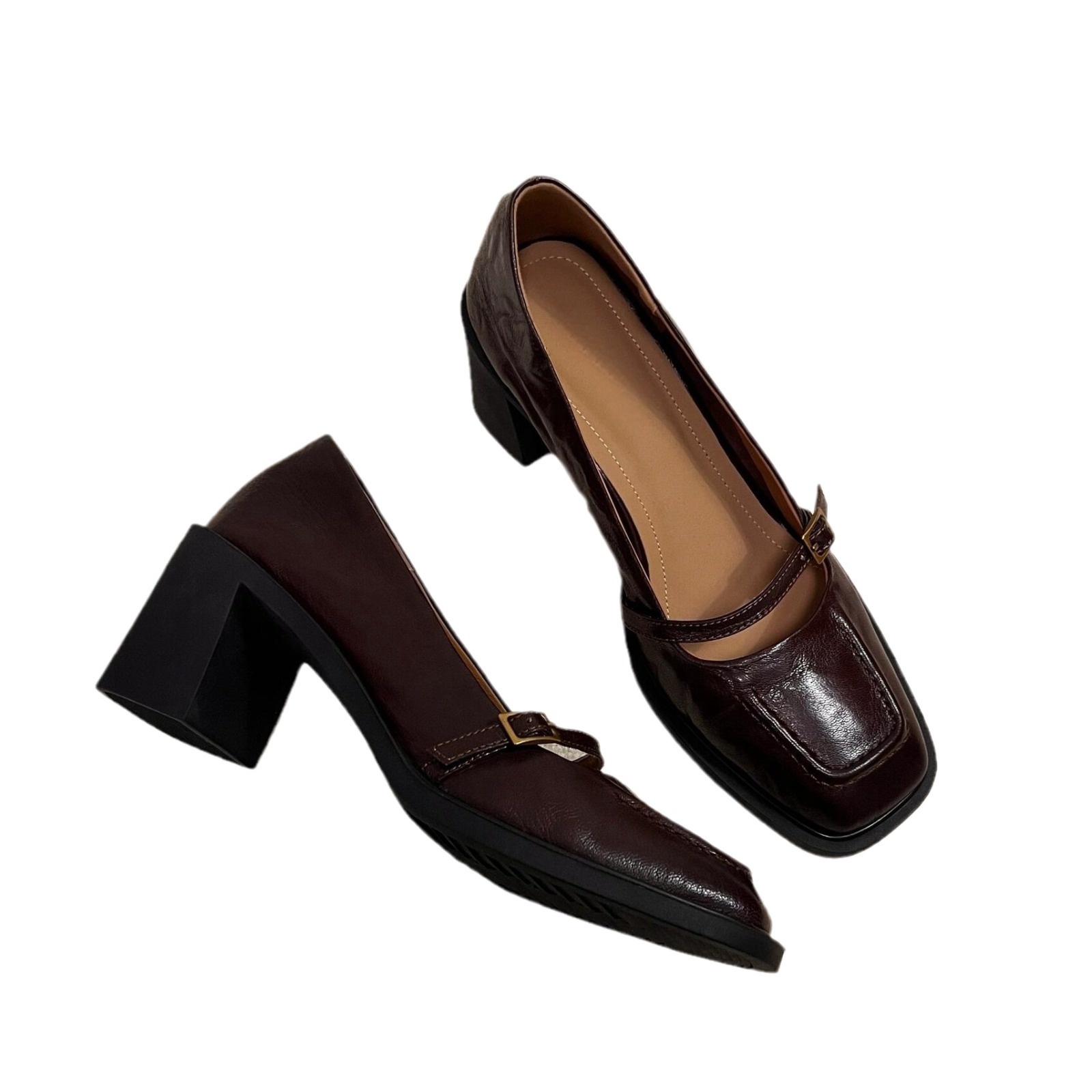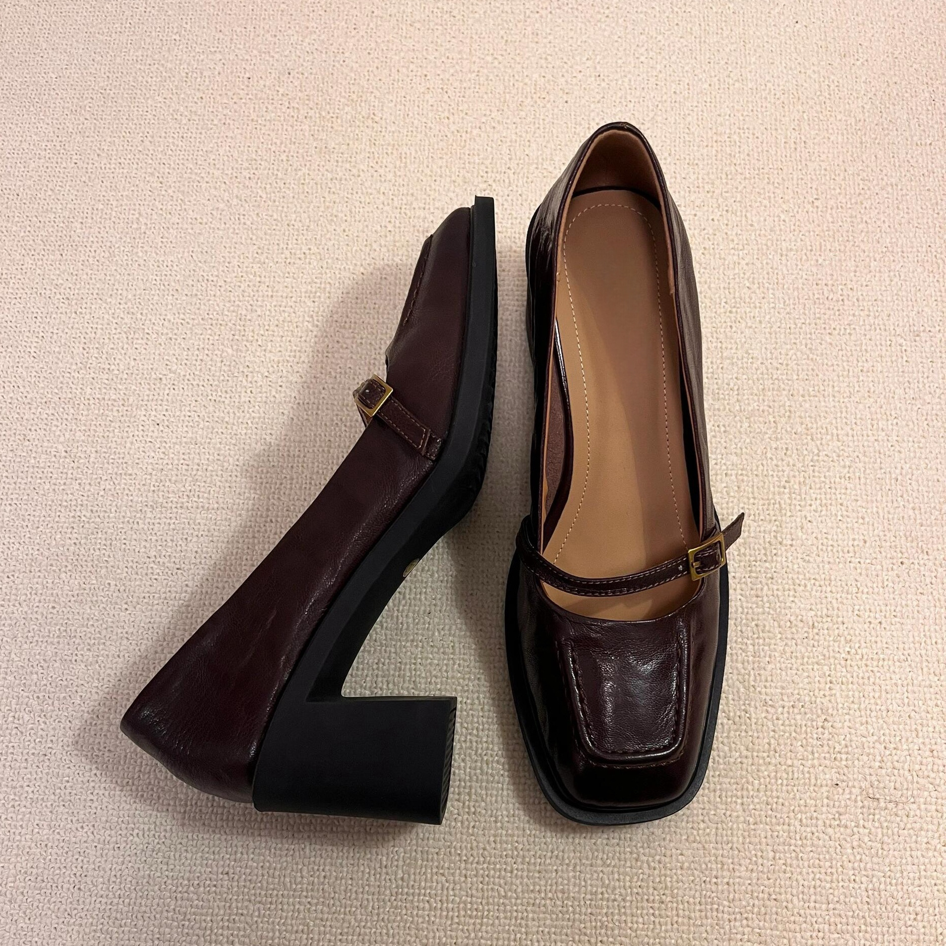 Главная страница > Мягкая овчинка ретро с квадратной головой и неглубоким каблуком JK маленькие кожаные туфли 2024 французские кожаные туфли с толстым каблуком Mary Jen Single Женские туфли