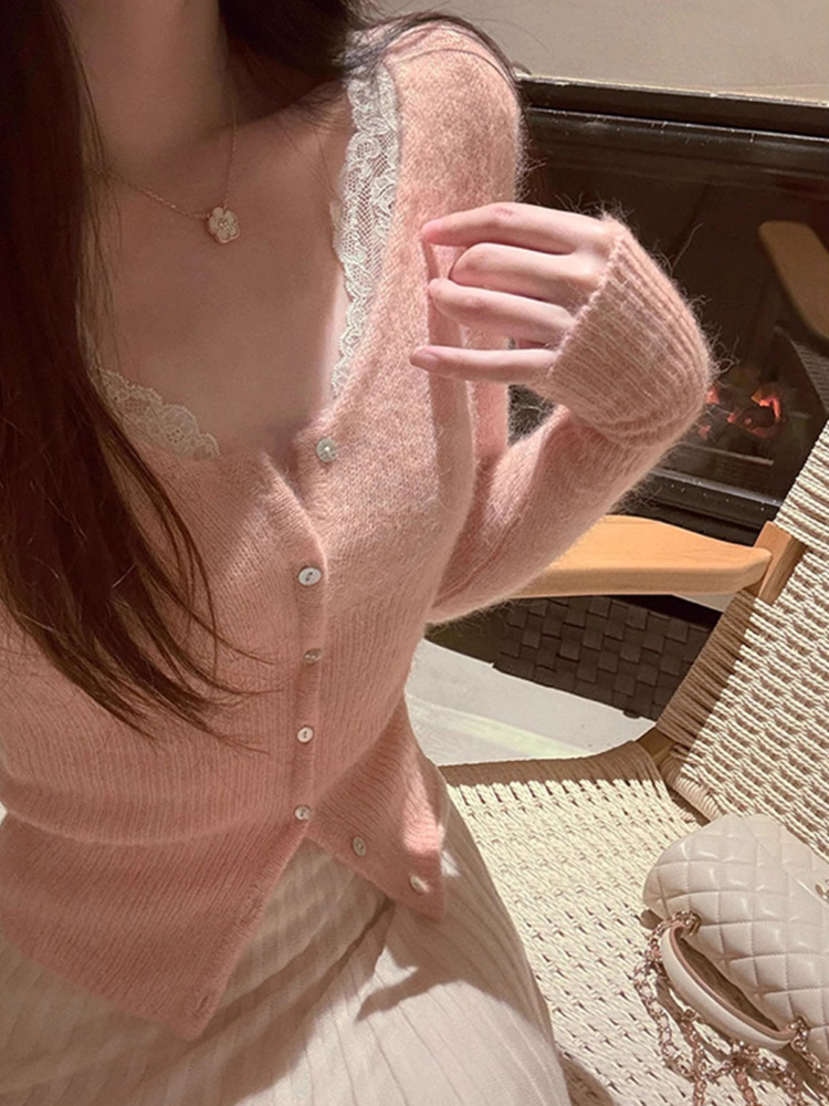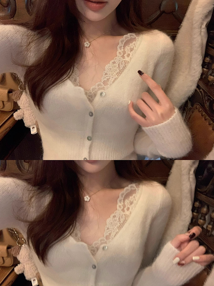 Xiao Xiangfeng кружевной V-образный трикотажный нижний свитер