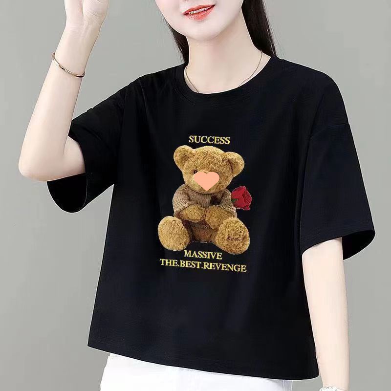 Черный розовый медведь [Чистый хлопок]