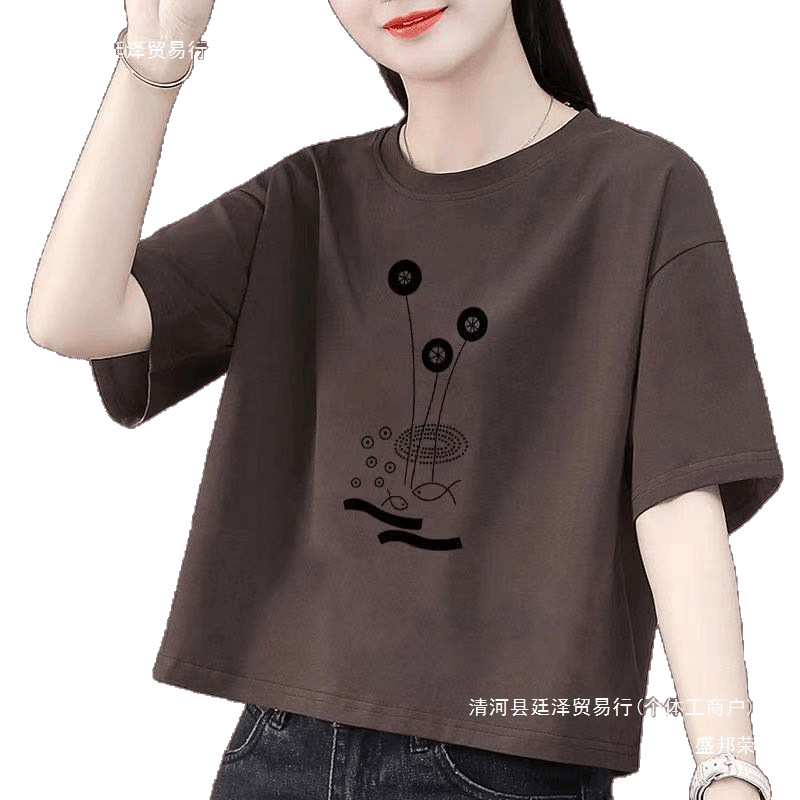 Главная страница > 100% хлопковая короткая рубашка для женщин в корейском стиле, свободная, новая модель 2024 года, женская футболка с высокой талией