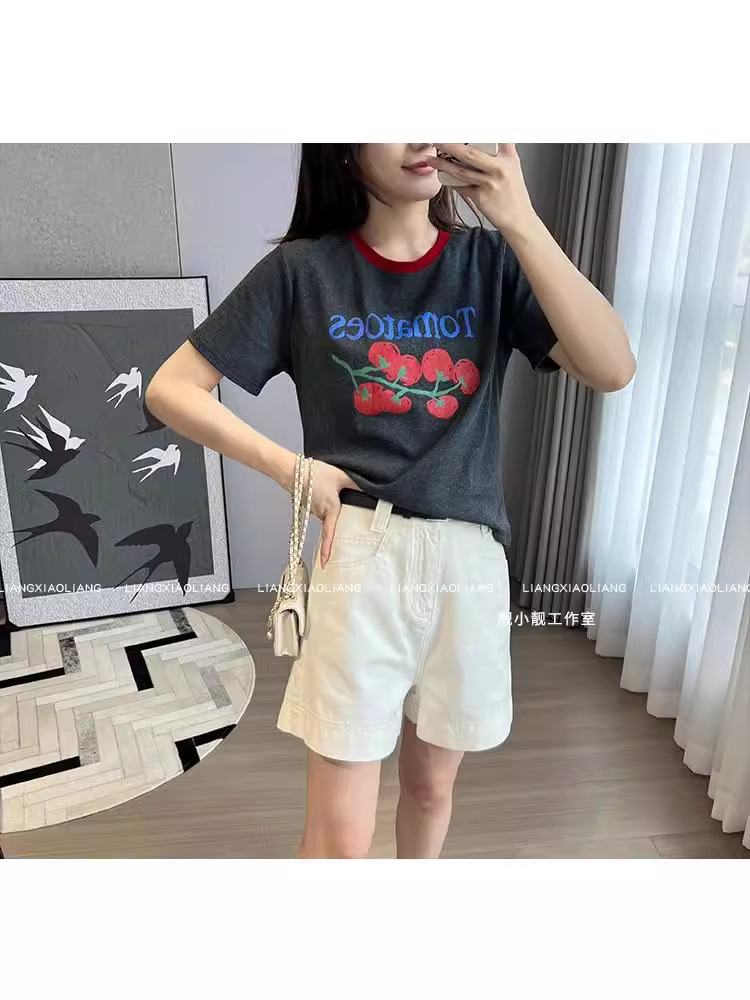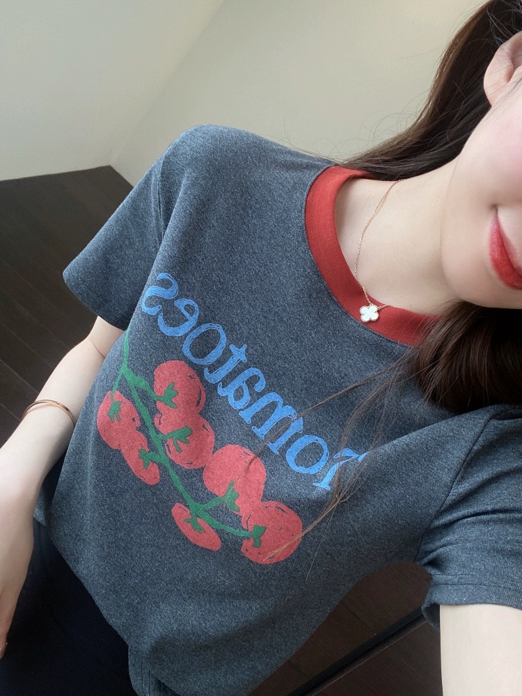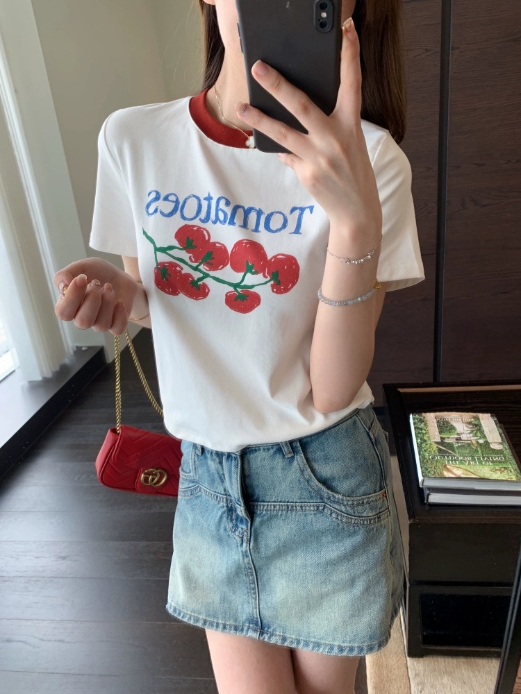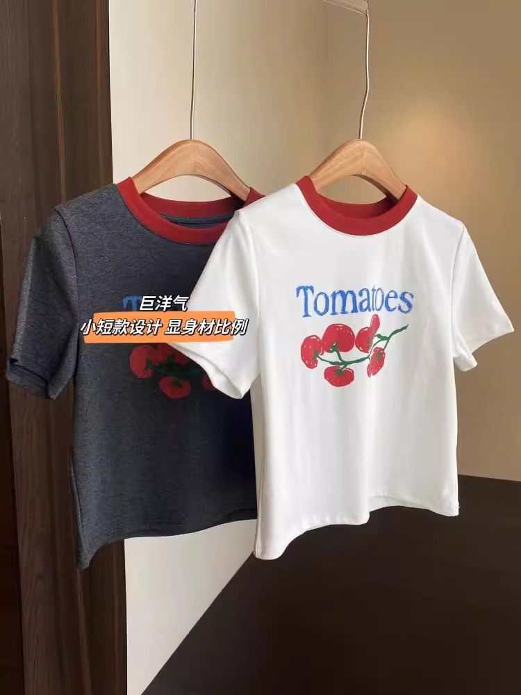 Главная страница > AMR UU ◆ Корейская одиночная горячая девушка ветер сладкий и прохладный стиль короткий буквенно-тонкая футболка с коротким рукавом
