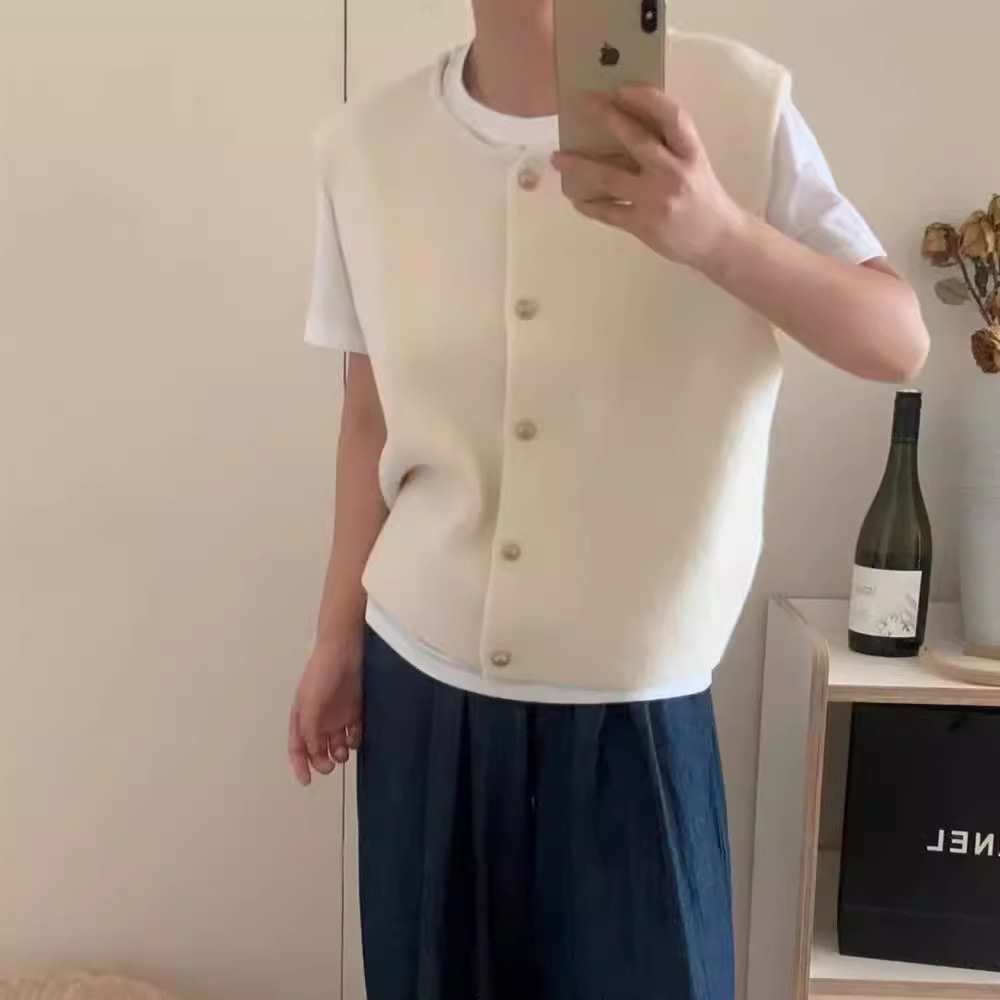 Главная страница > Универсальный утягивающий вязаный жилет с пятью пуговицами для женщин 2024, Свободный Повседневный наборный жилет ранней осени, свитер, кардиган