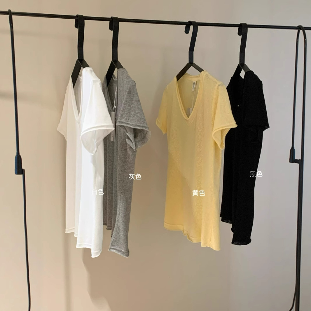 Главная страница > [WGWE] 5841 новая летняя текстурированная хлопковая свободная футболка со снежинками и v-образным вырезом, женская свободная повседневная футболка с короткими рукавами