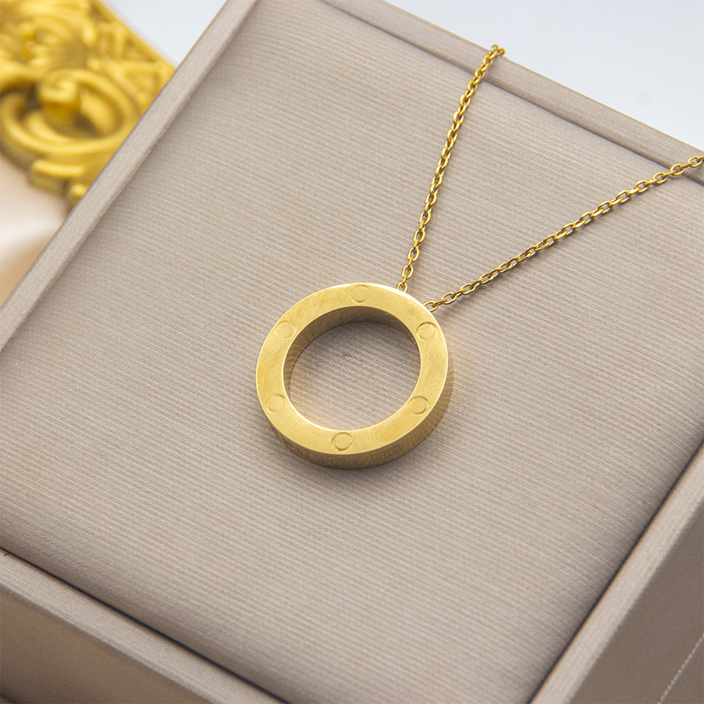 Главная страница > Ожерелье из титановой стали с одним кольцом, большим диском, легкая роскошь, невыцветающий, модный кулон с бриллиантами, женское ожерелье, цепочка на ключицу, колье.