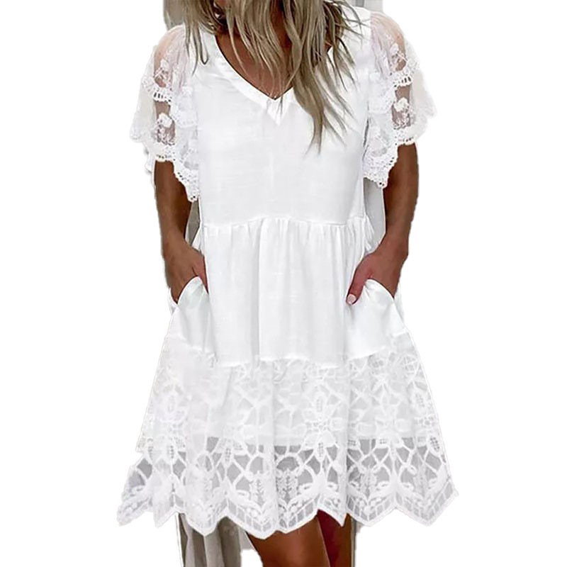 Главная страница > Платье с V-образным вырезом и кружевными короткими рукавами, новинка весны-лета 2024 года, европейский и американский стиль
