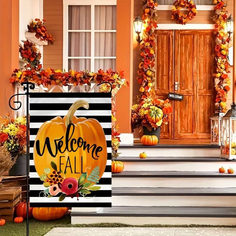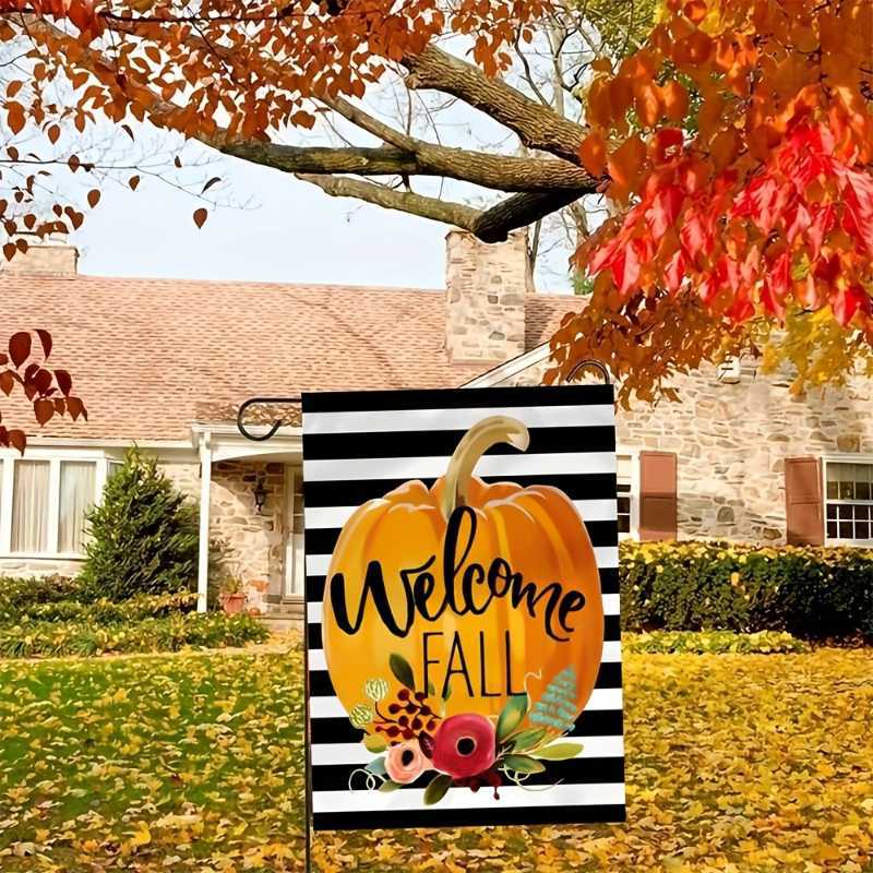 Главная страница > Добро пожаловать осенний садовый флаг тыквенный лист сотня садовый флаг осенний уличный урожай украшение фермерского дома День благодарения