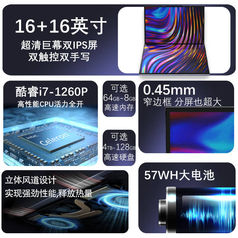 Новый ноутбук с двумя сенсорными экранами 16+ 16inch Core i7 для офисного обучения, торговли акциями, программирования, дизайна игр