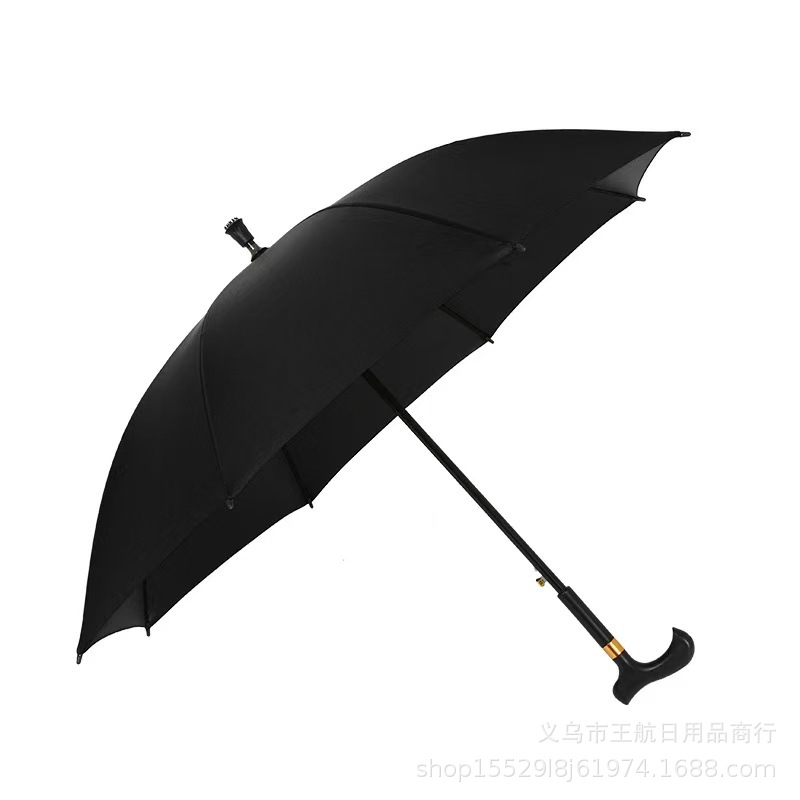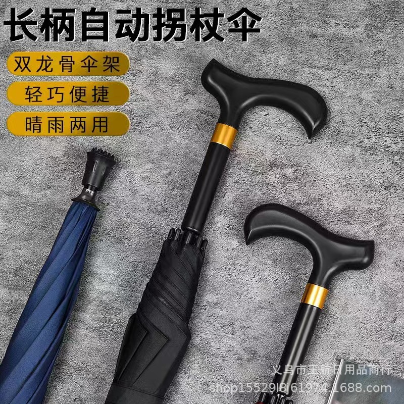 Оптовая продажа от производителя: зонт-трость с длинной ручкой для пожилых людей, усиленный противоскользящий зонт для походов, полуавтоматический зонт с черным полиэстеровым покрытием для солнечных и дождливых дней.