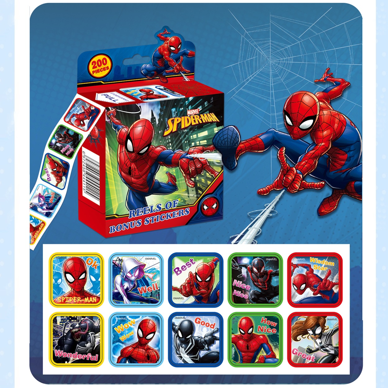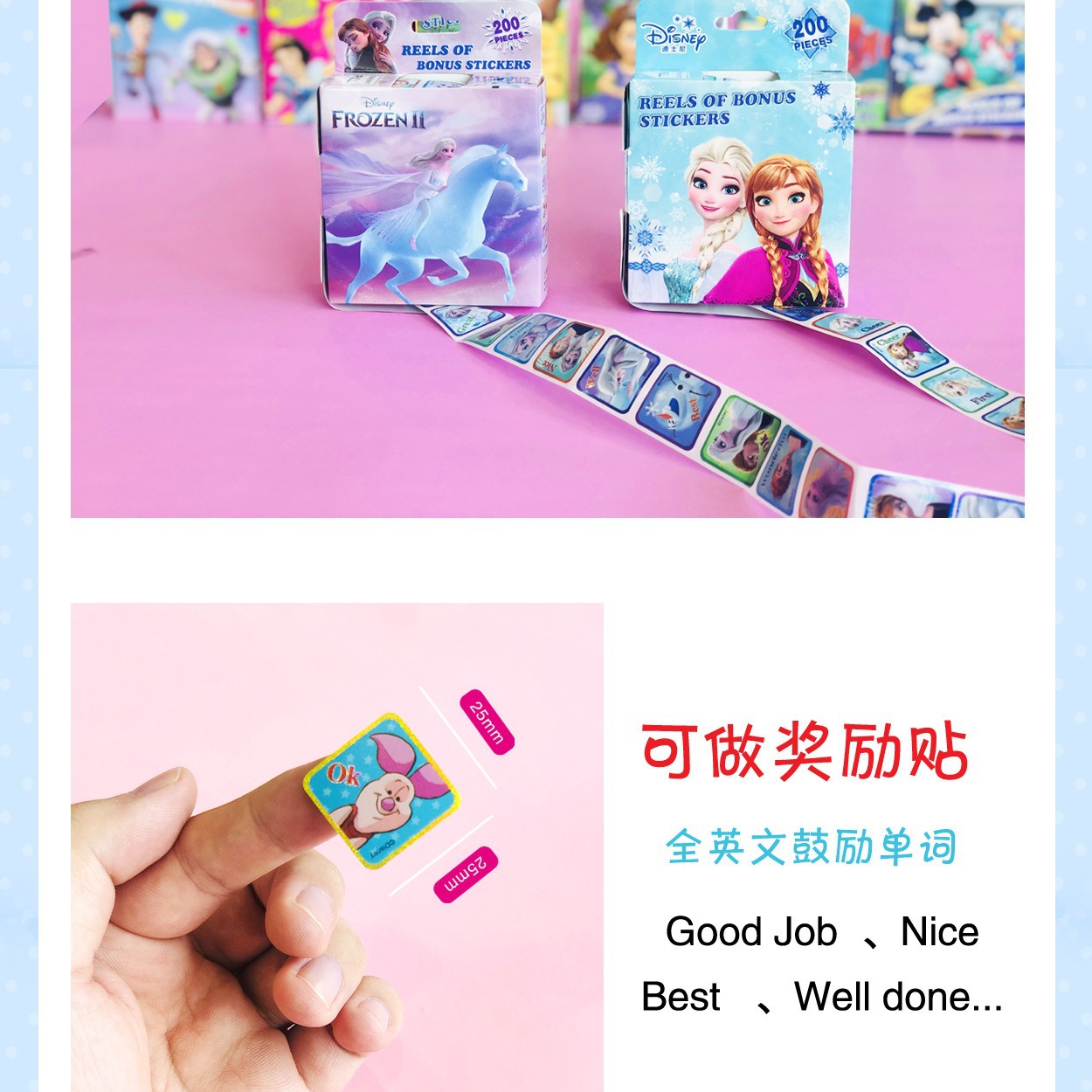 Подлинные 200 наклеек, блестящие Мультяшные рулонные наклейки, Замороженная Принцесса, летающий человек, Детские рулонные наклейки, наградные наклейки