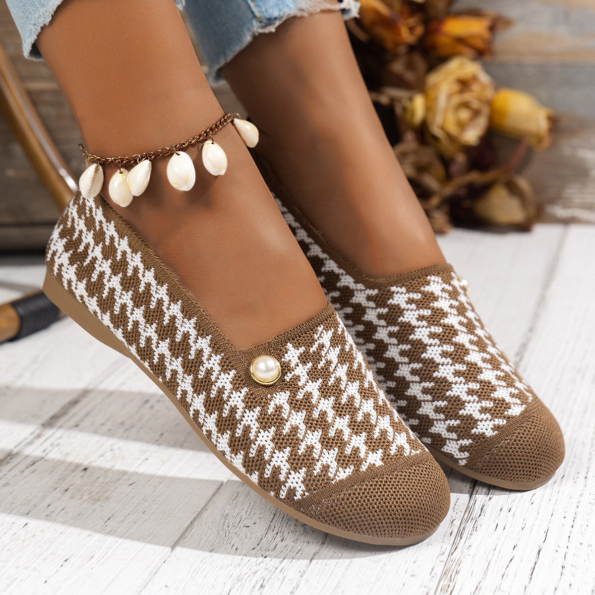 Трансграничные лоферы TEMU, подошвы на плоской подошве с круглым носком, удобная и дышащая повседневная обувь, неглубокий рот и жемчуг с круглым носком, рождественские элементы.