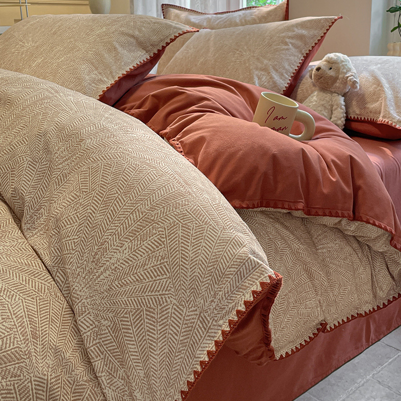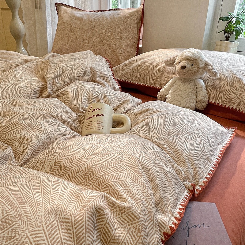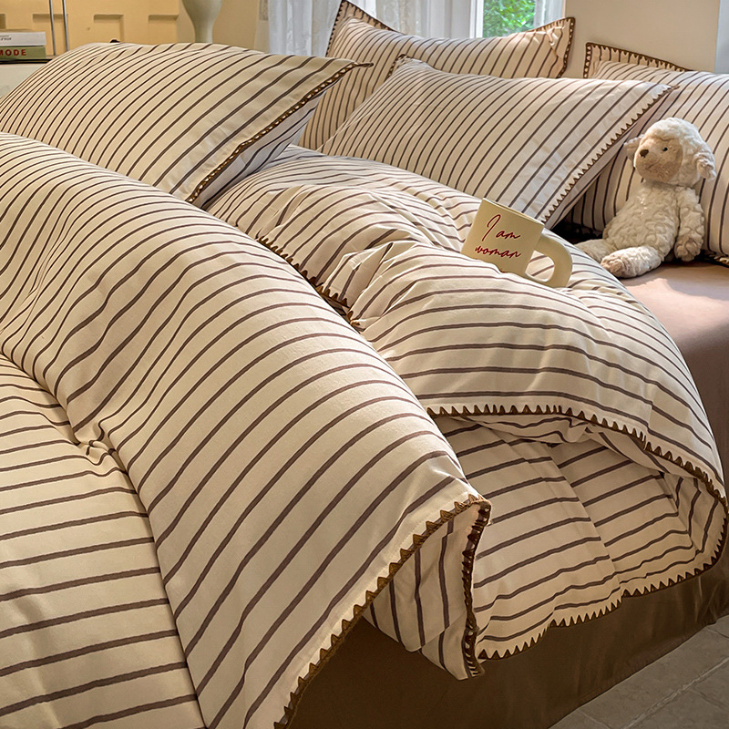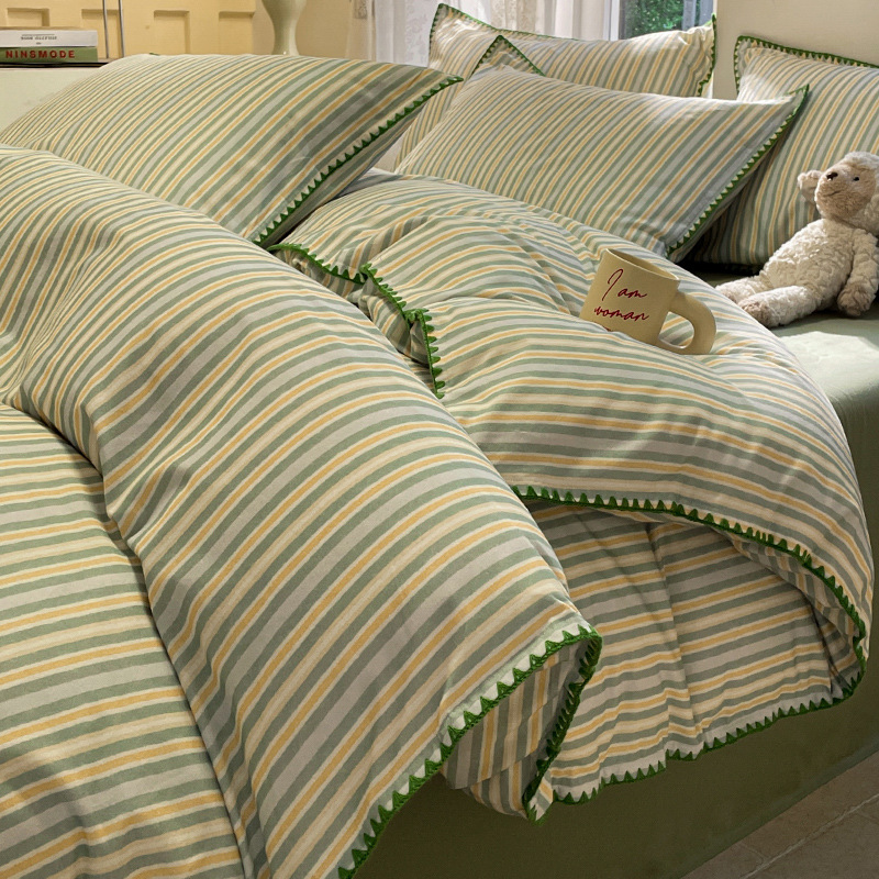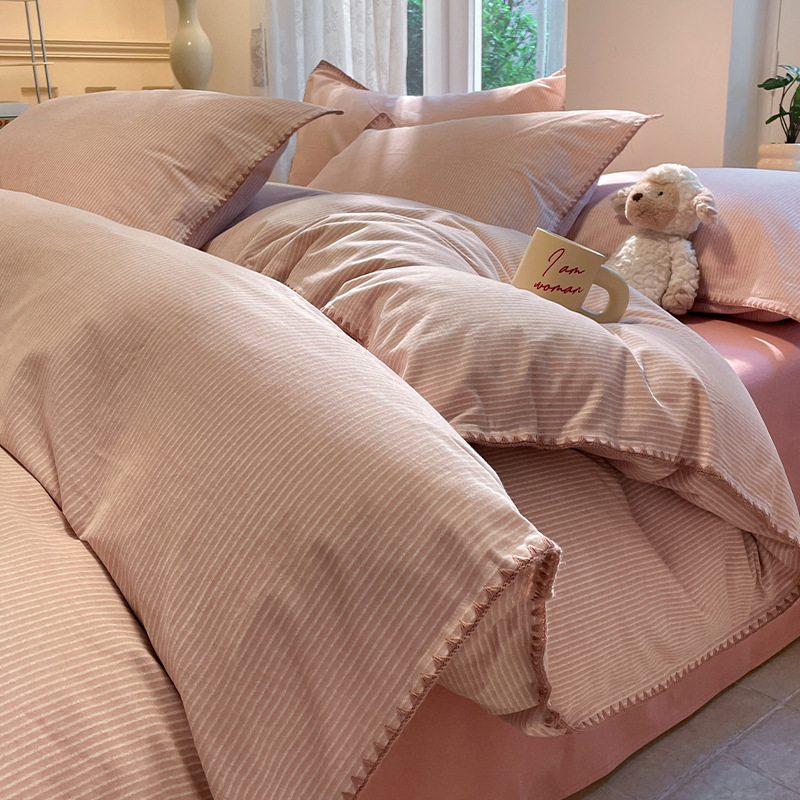 Ins стиль, матовая кровать из чистого хлопка, комплект из четырех предметов, новинка 2025, хлопковое пододеяльник, простыни, комплект простыней из трех предметов