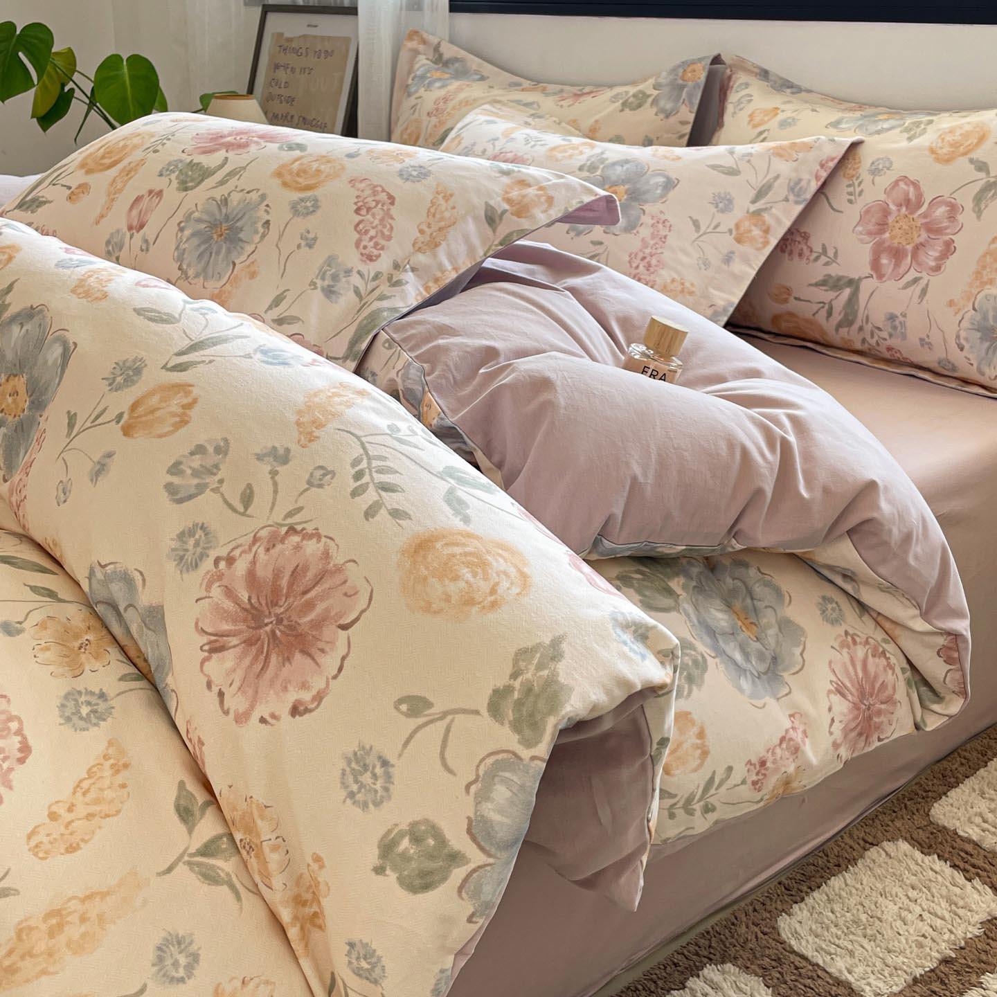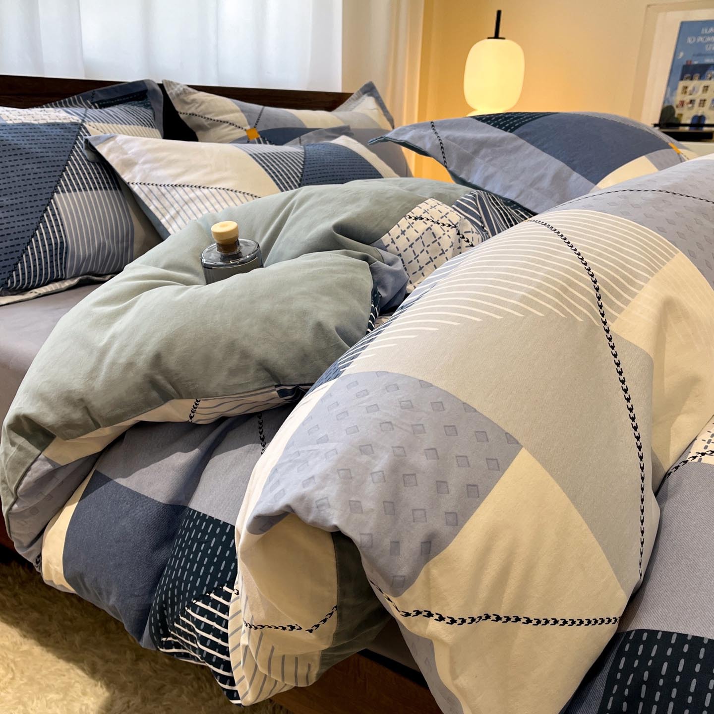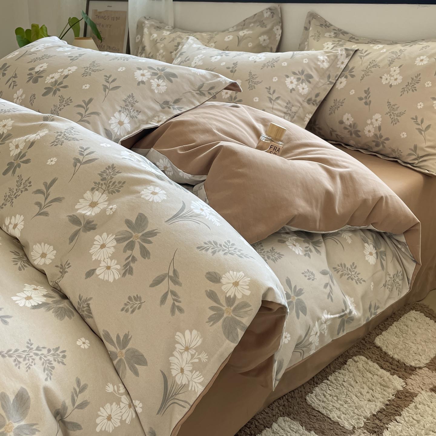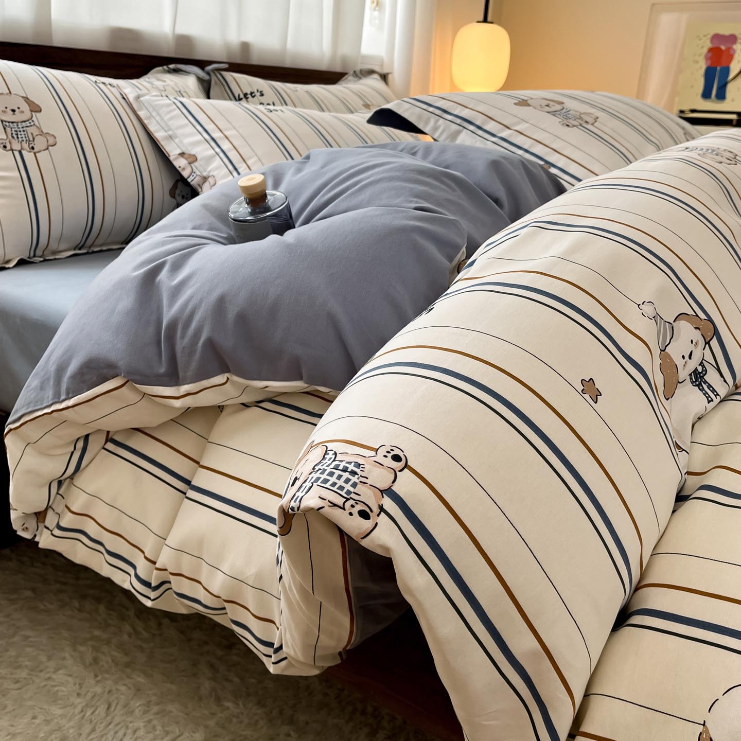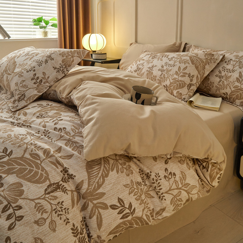 Осенне-зимний комплект из четырех предметов класса А: утолщенный, начесанный, 100% чистый хлопок, с принтом – пододеяльник, простыня, натяжная простыня. Для общежития, односпальный/двуспальный.
