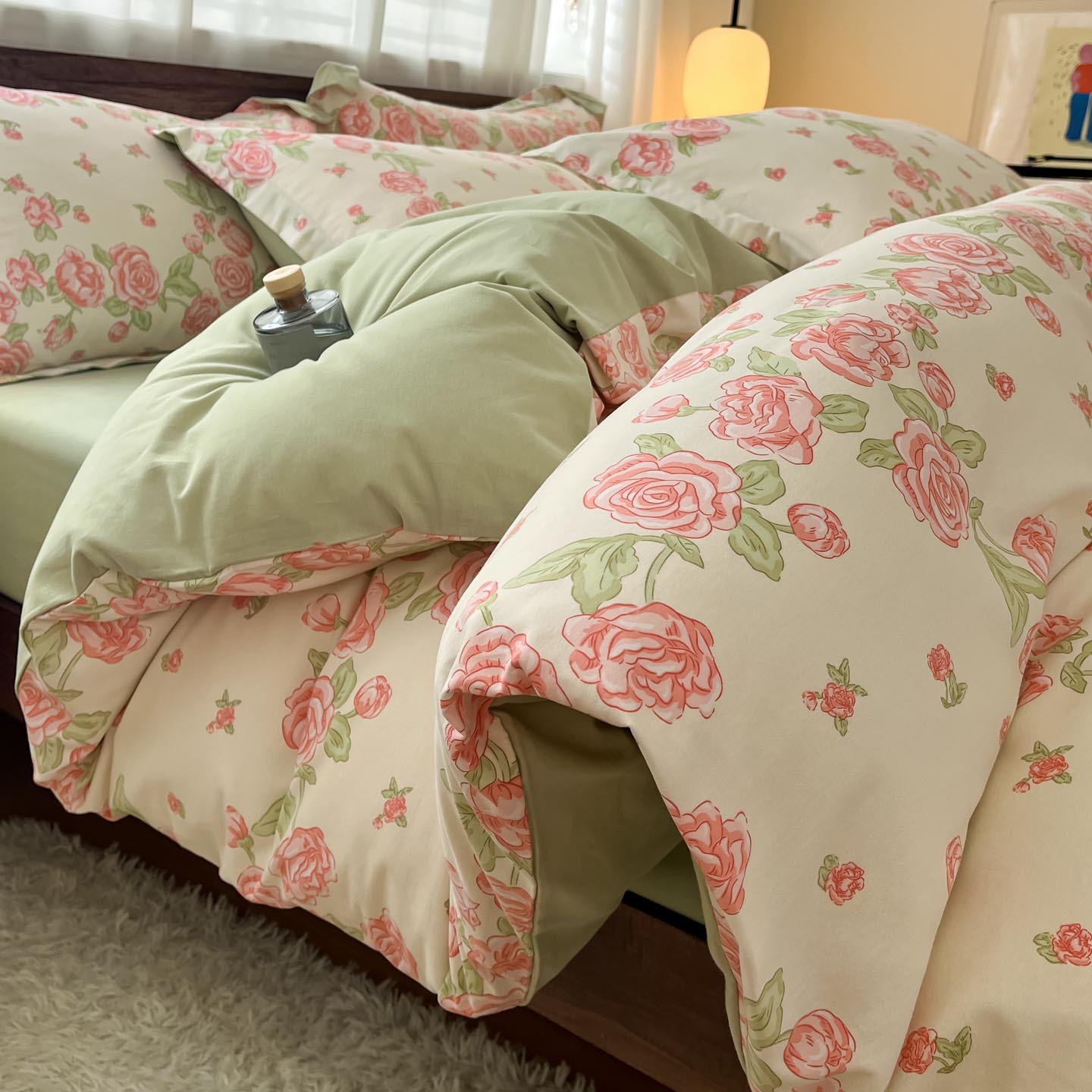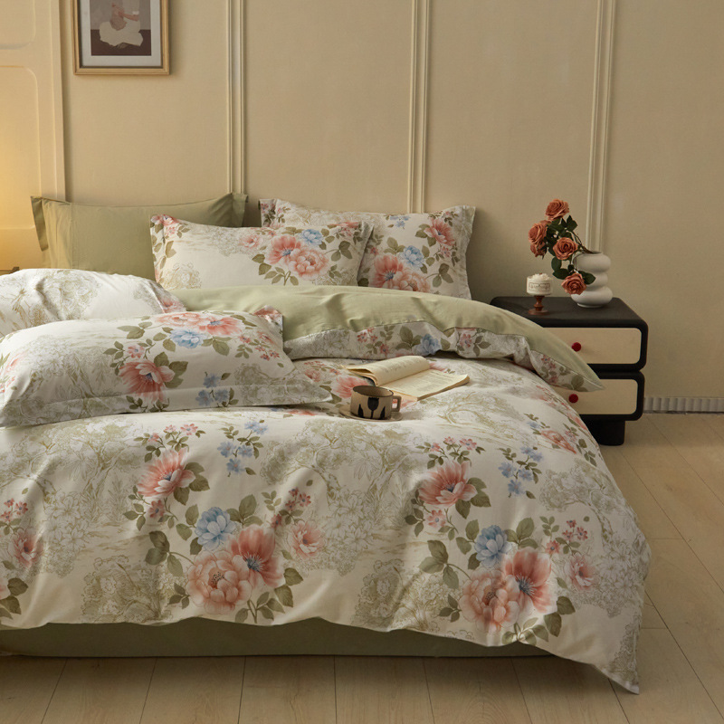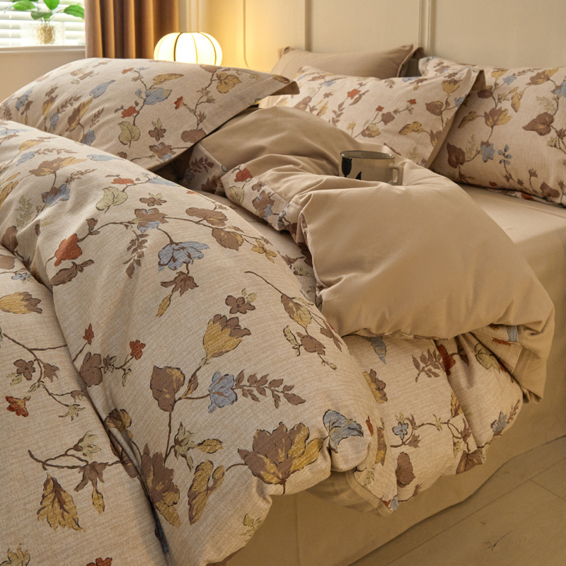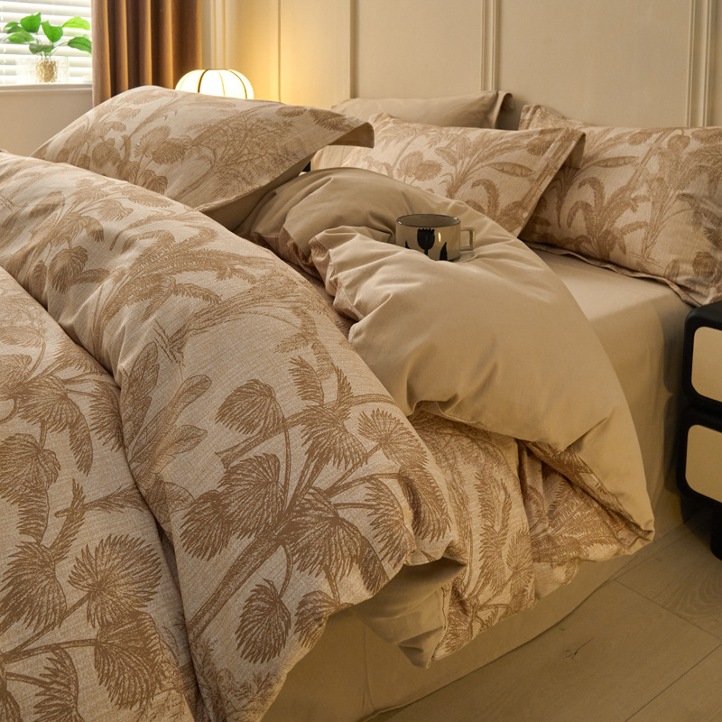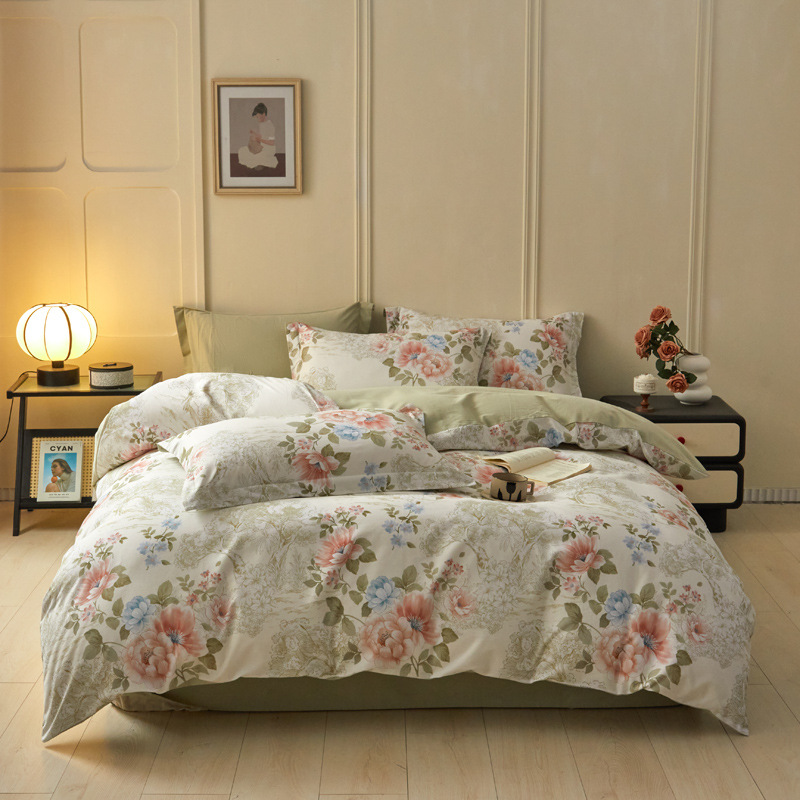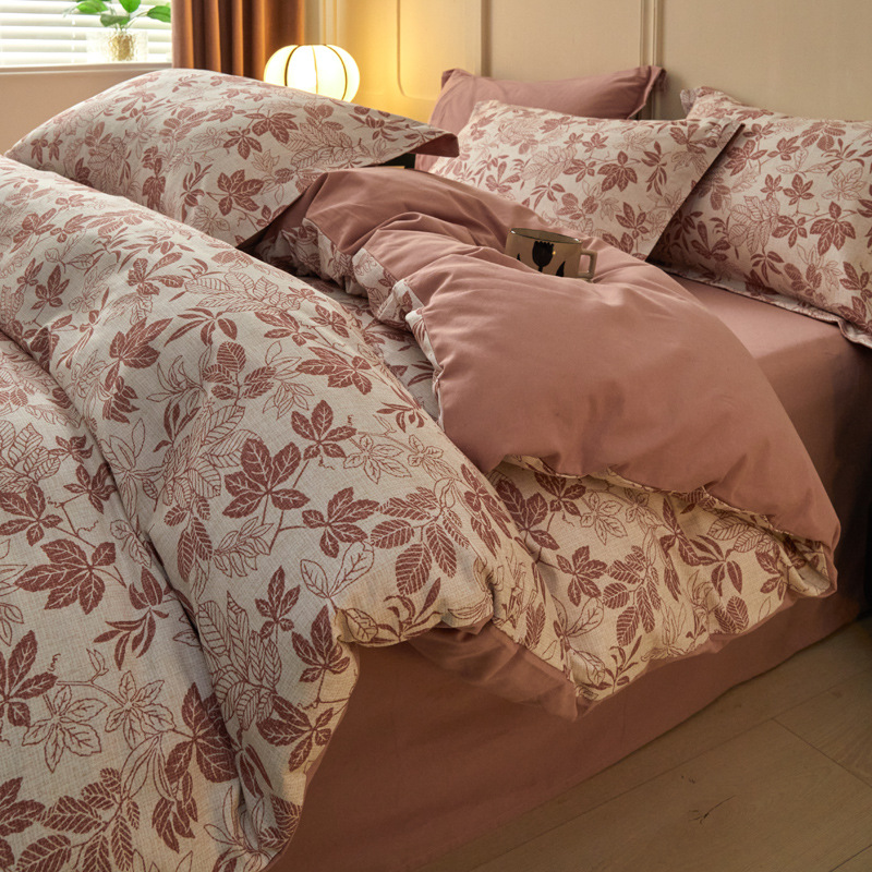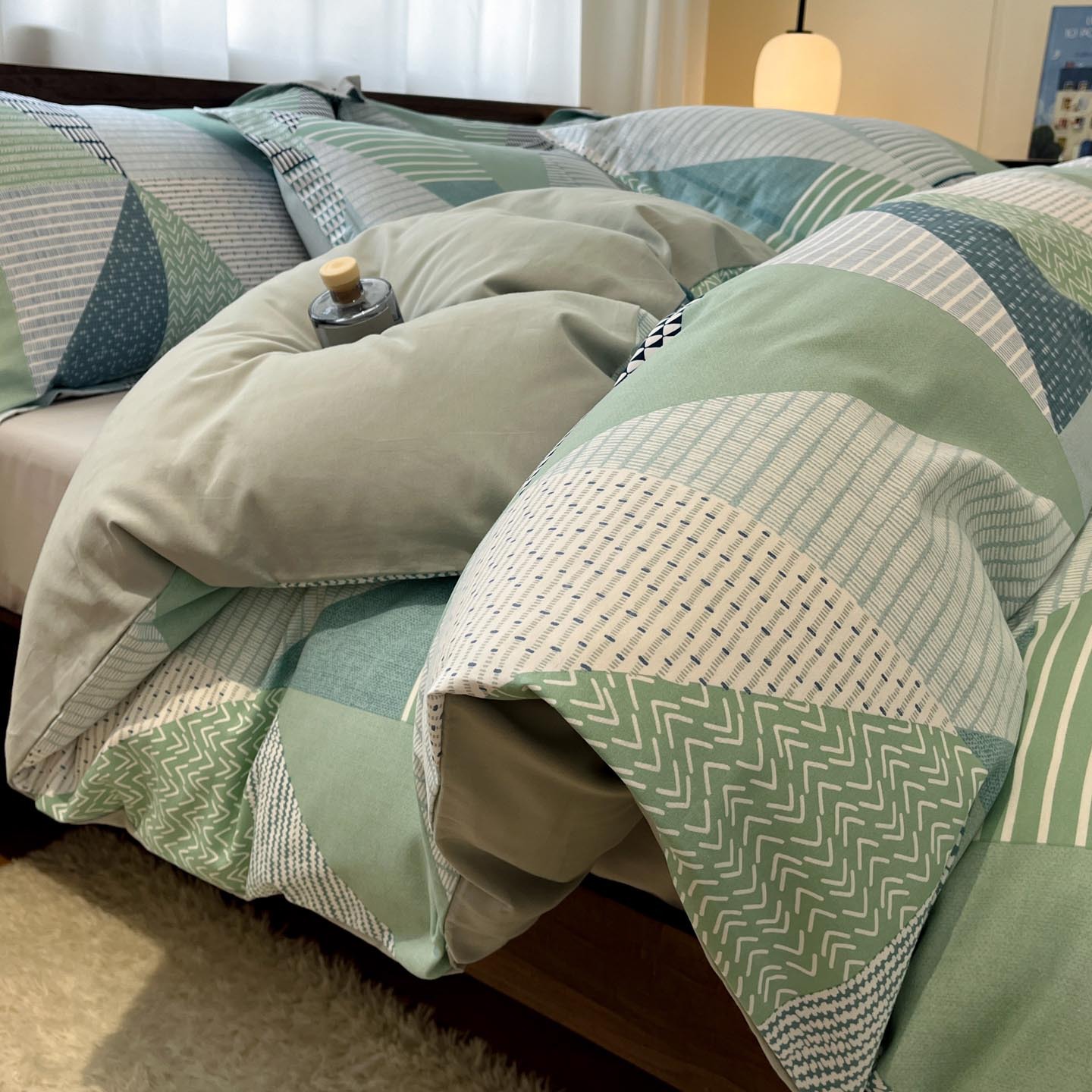 Осенне-зимний комплект из четырех предметов класса А: утолщенный, начесанный, 100% чистый хлопок, с принтом – пододеяльник, простыня, натяжная простыня. Для общежития, односпальный/двуспальный.