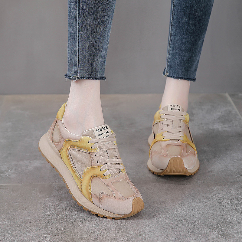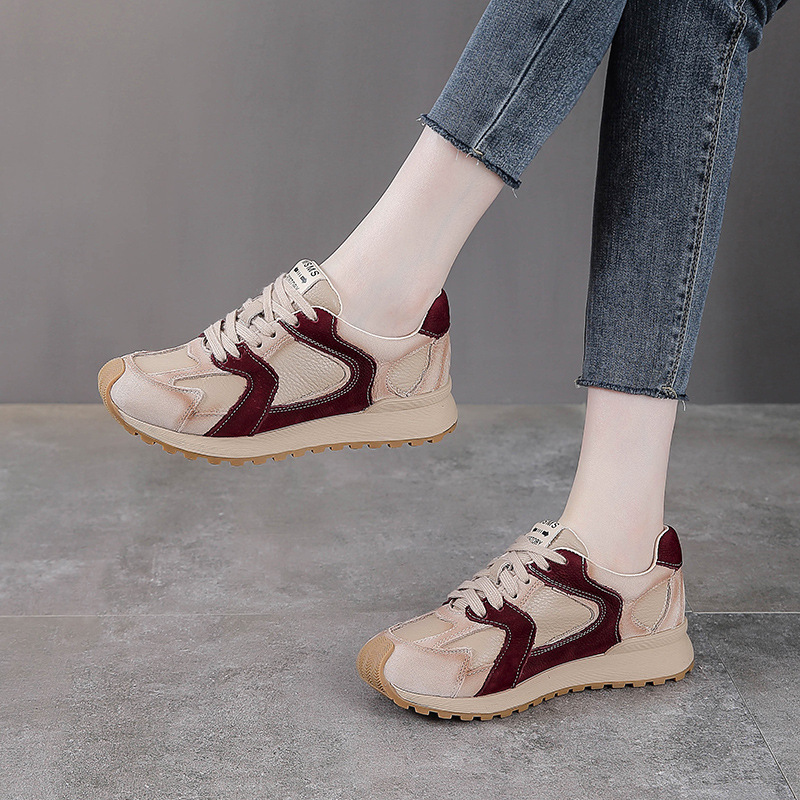 Кожаная обувь первого слоя из коровьей кожи арганда женская весна и осень натуральная кожа дикий цвет шнуровка одношнуровка плюс бархатная спортивная повседневная обувь